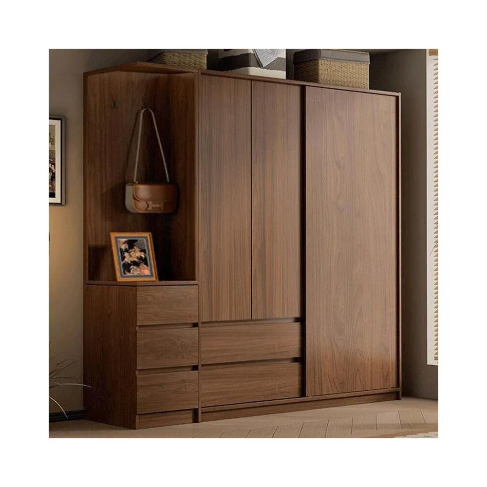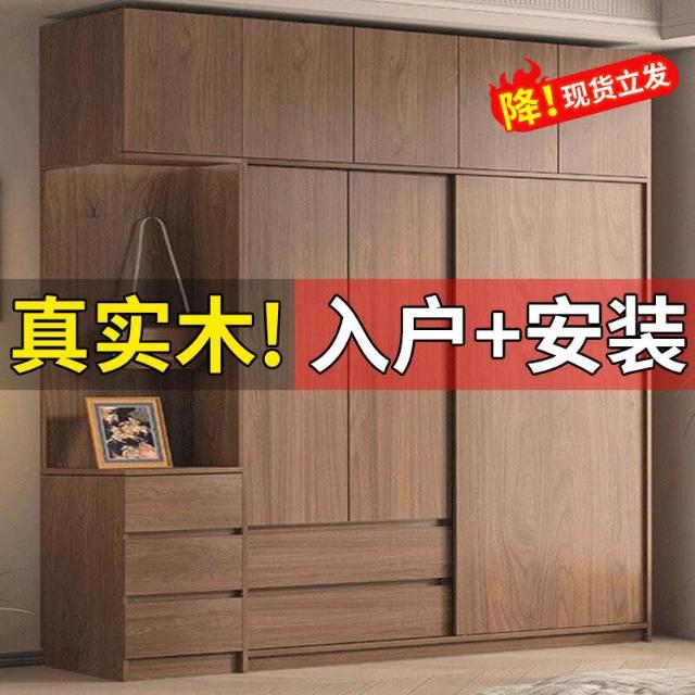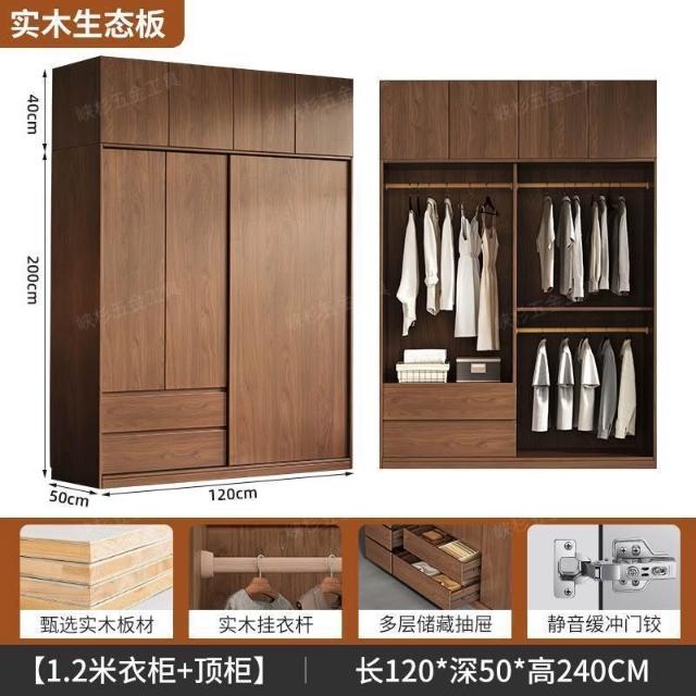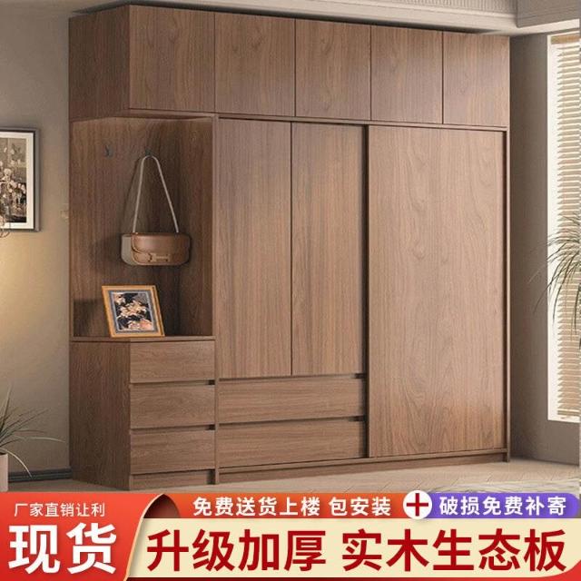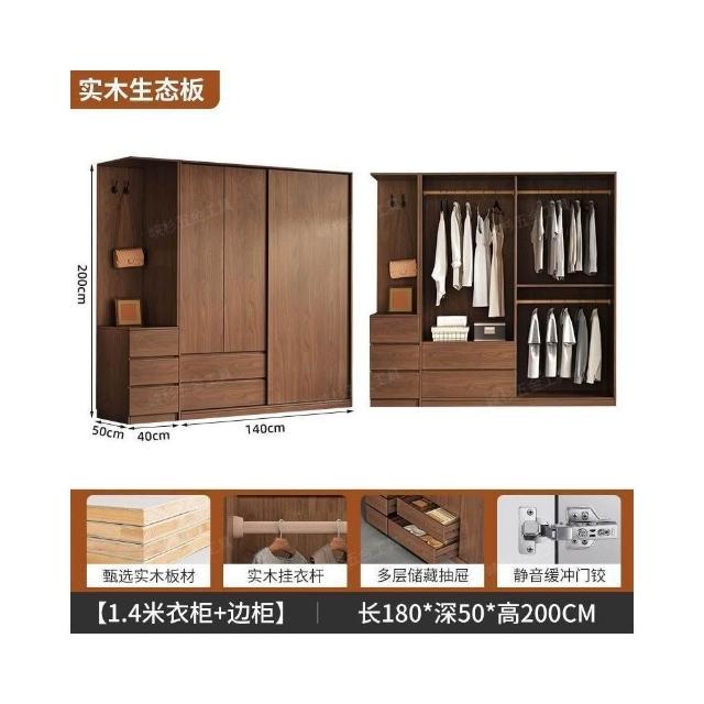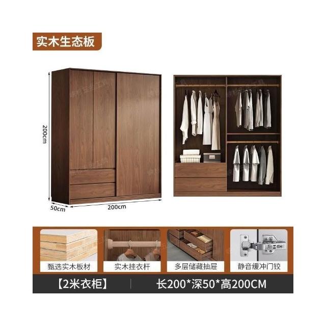 全實木衣櫃 家用臥室收納帶抽屜櫃子 經濟型出租房用大衣櫥