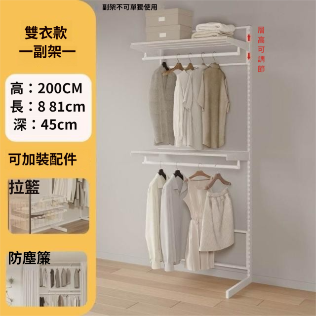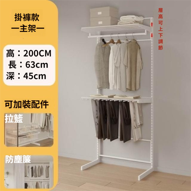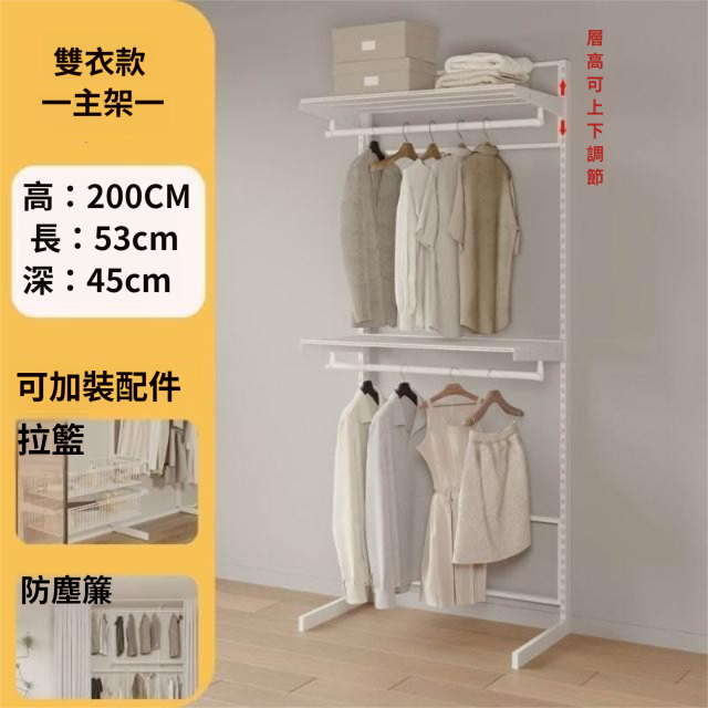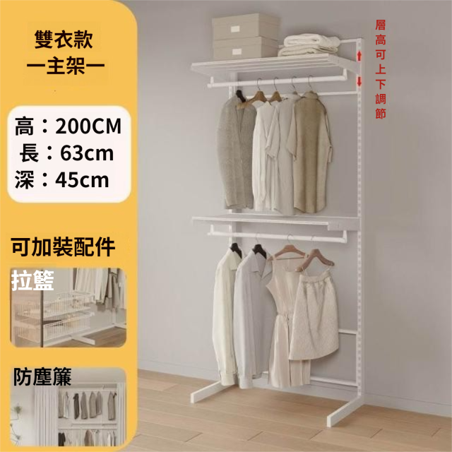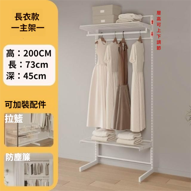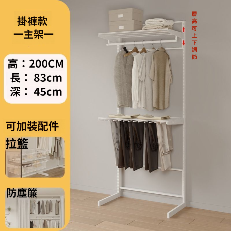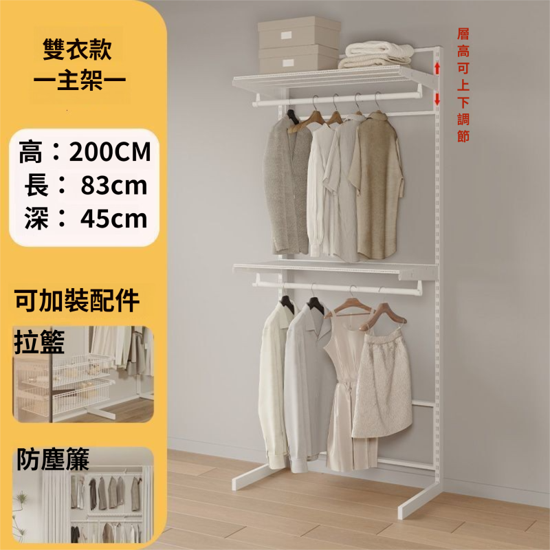 升級款金屬衣櫃開放式落地衣帽間鋼架結構防塵簾臥室落地墻儲物間