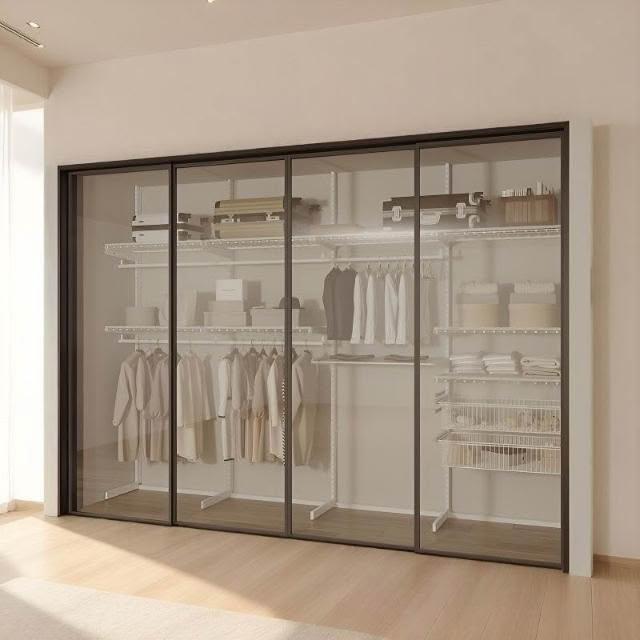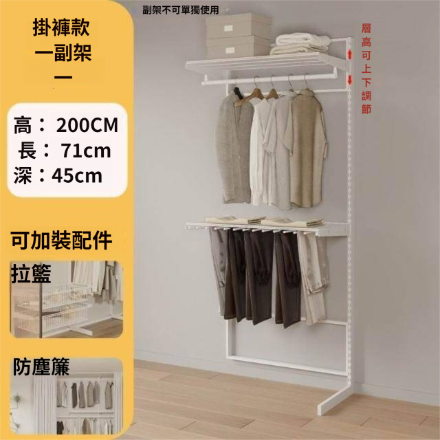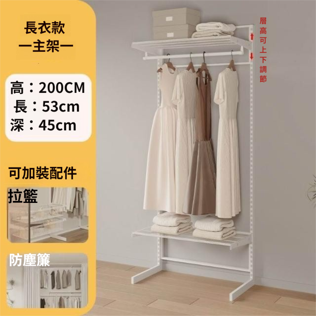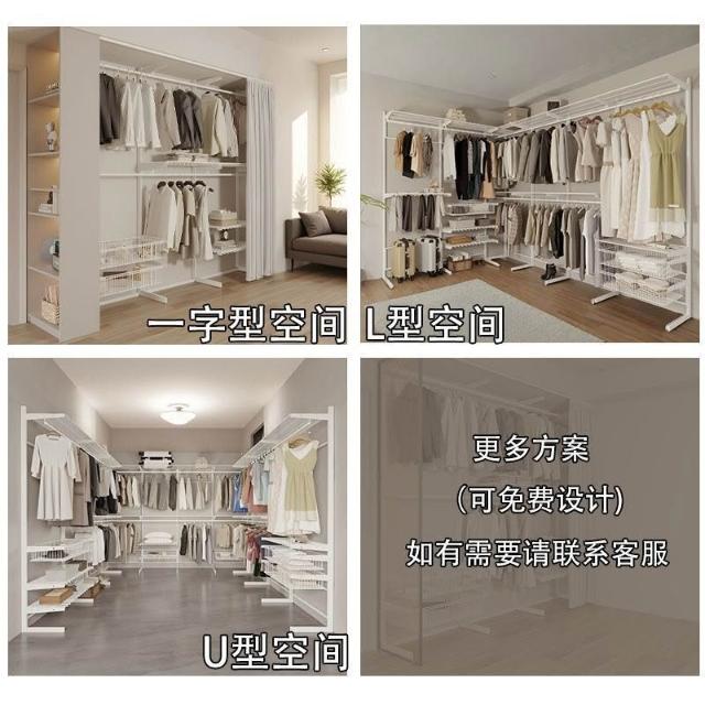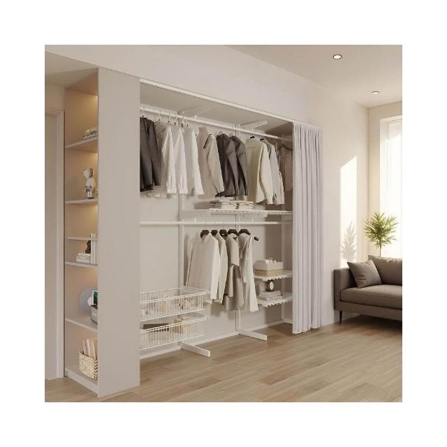升級款金屬衣櫃開放式落地衣帽間鋼架結構防塵簾臥室落地墻儲物間
