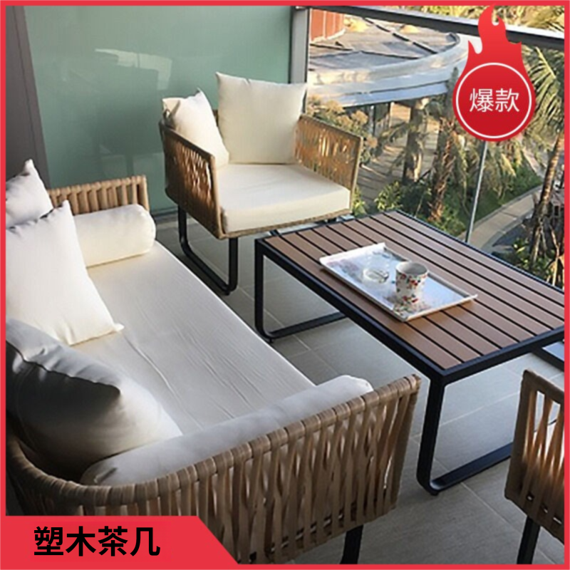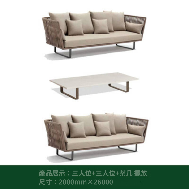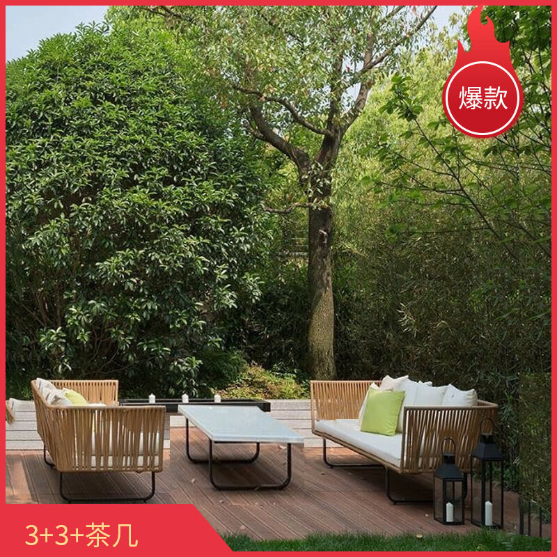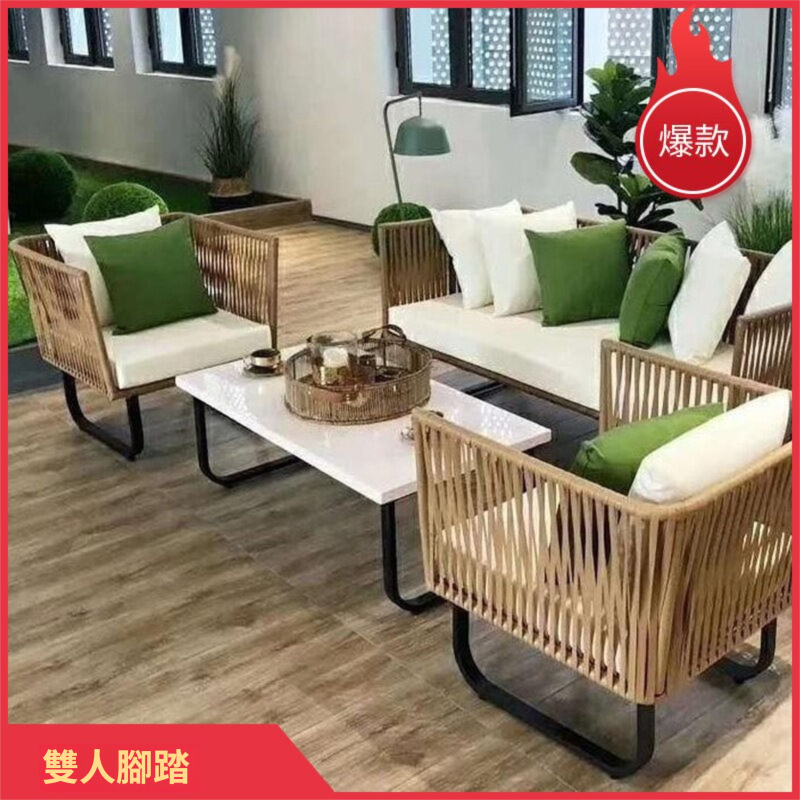 戶外藤編沙發三人防水防曬名宿庭院花園陽臺室外休閑茶幾藤椅家具