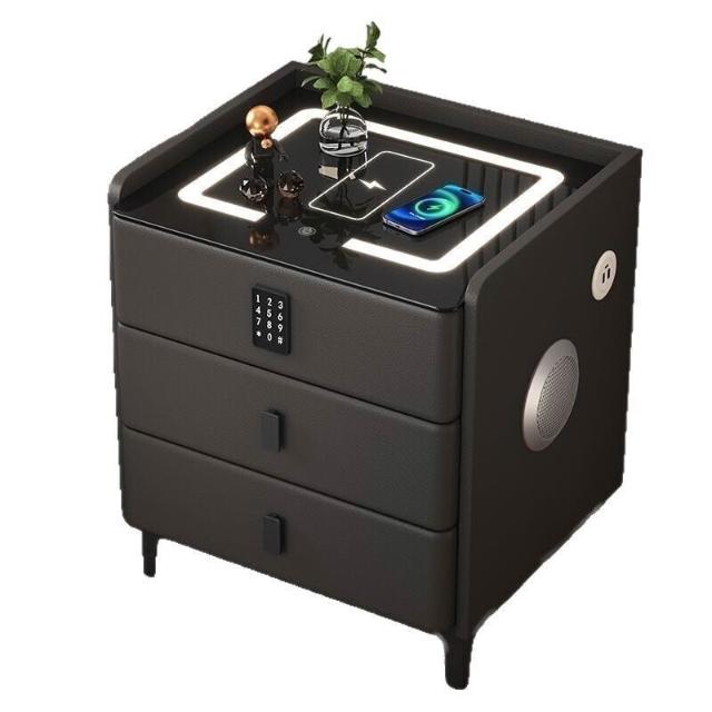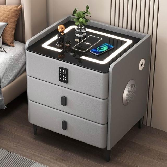 床頭櫃臥室家用多功能實木無線充電輕奢床邊櫃現代簡約指紋鎖