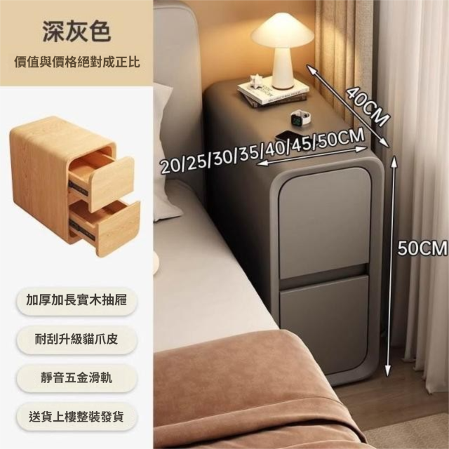 奶油風床頭櫃簡約現代皮質床邊櫃小型超窄20cm極簡迷你收納櫃
