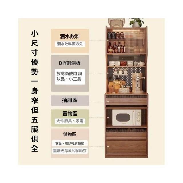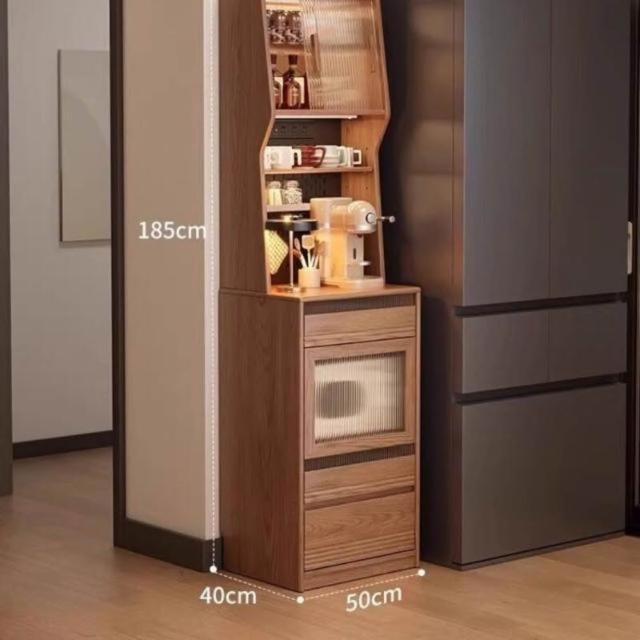 實木餐邊櫃中古風小戶型高櫃廚房靠墻一體儲物置物櫃窄邊型茶水櫃