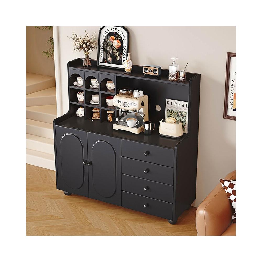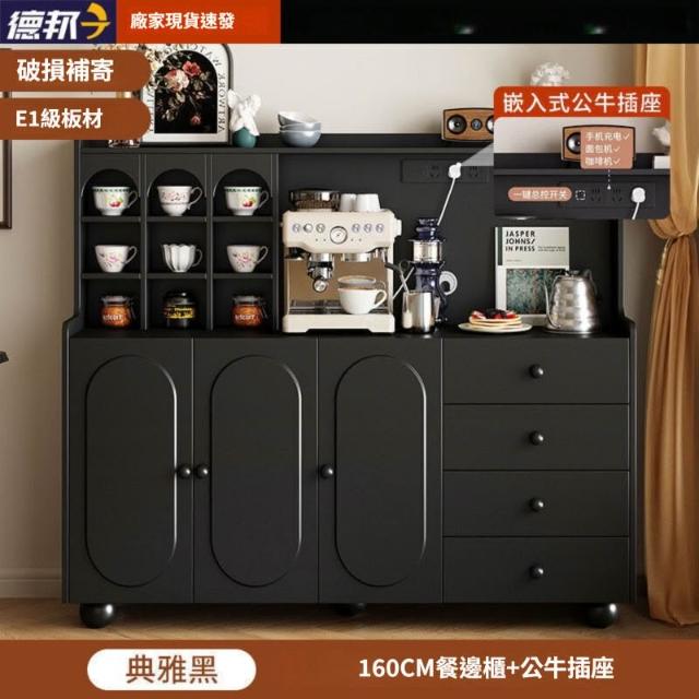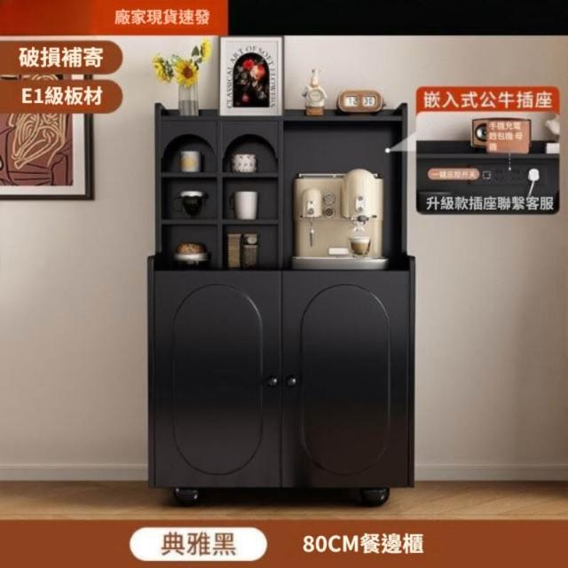 法式輕奢黑色實木餐邊櫃茶水櫃小戶型客廳鬥櫃沙發旁櫃咖啡機櫃