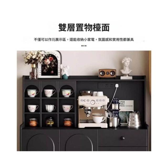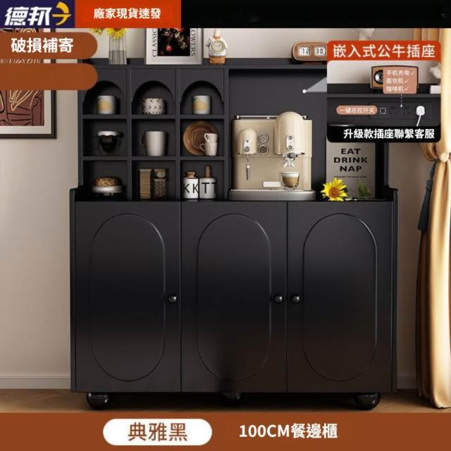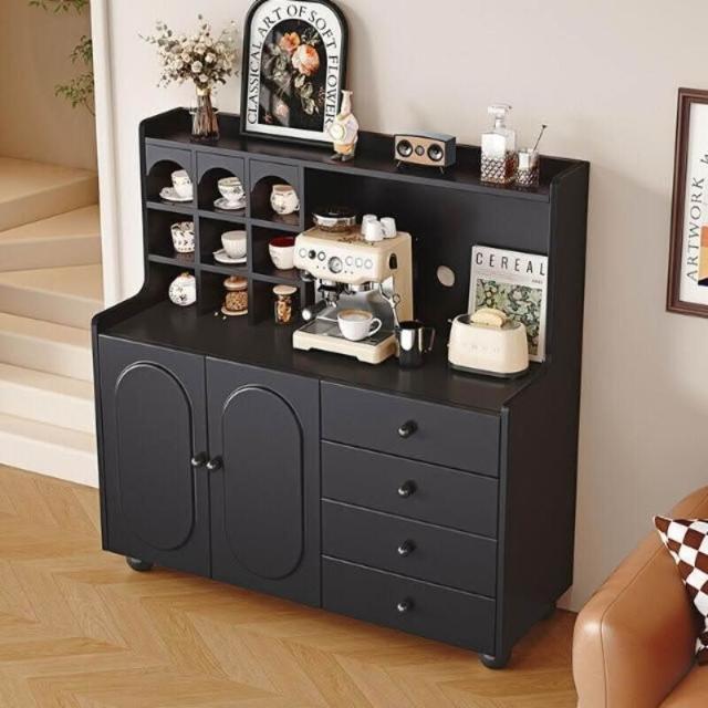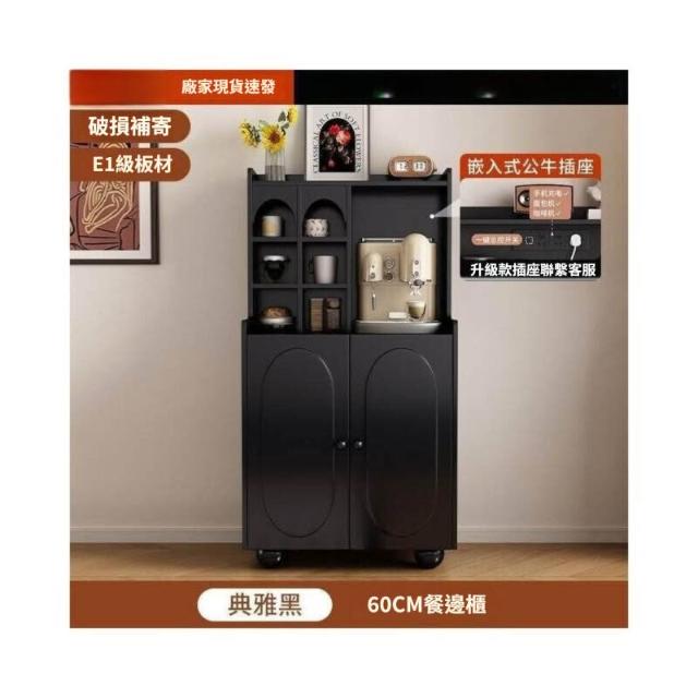 法式輕奢黑色實木餐邊櫃茶水櫃小戶型客廳鬥櫃沙發旁櫃咖啡機櫃