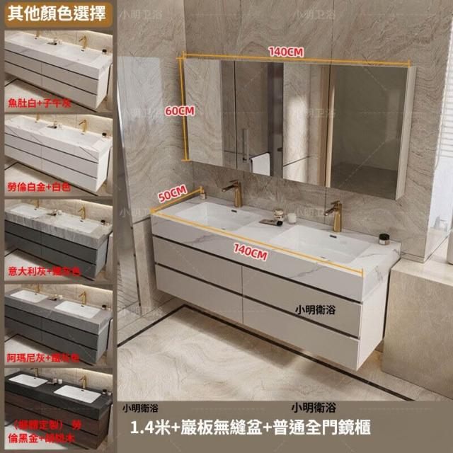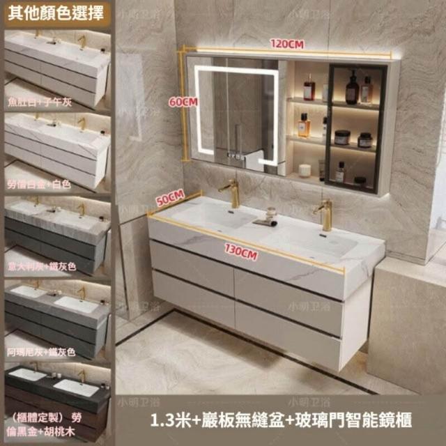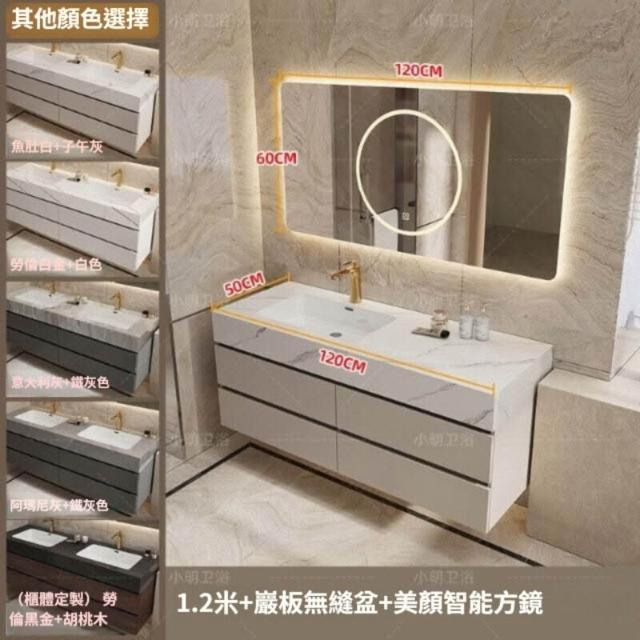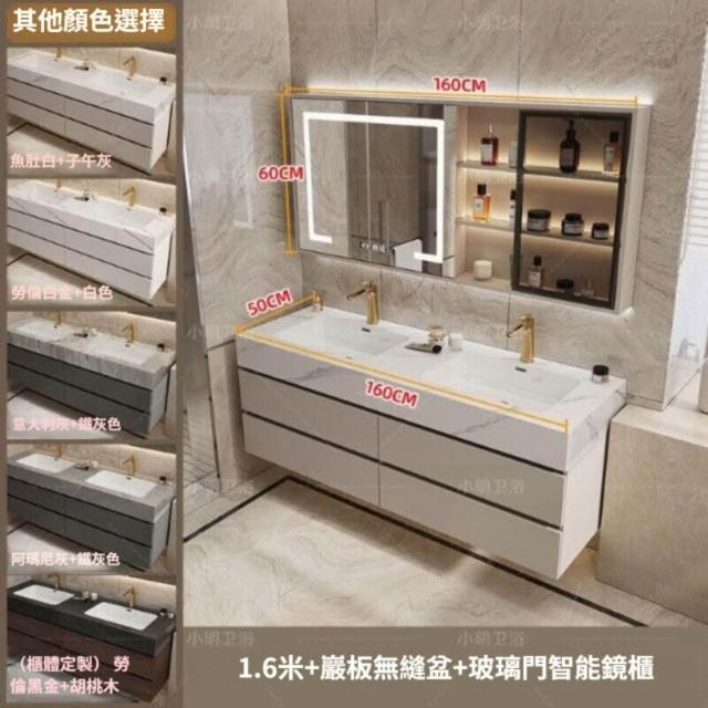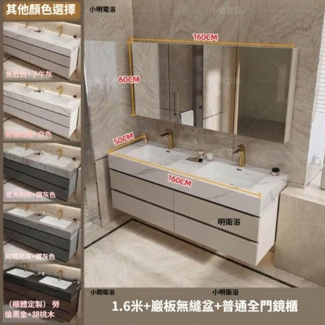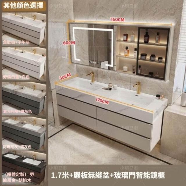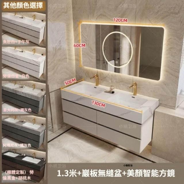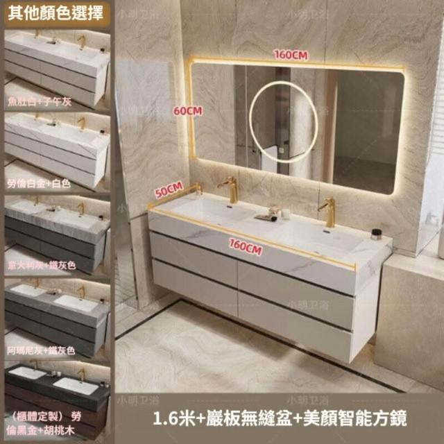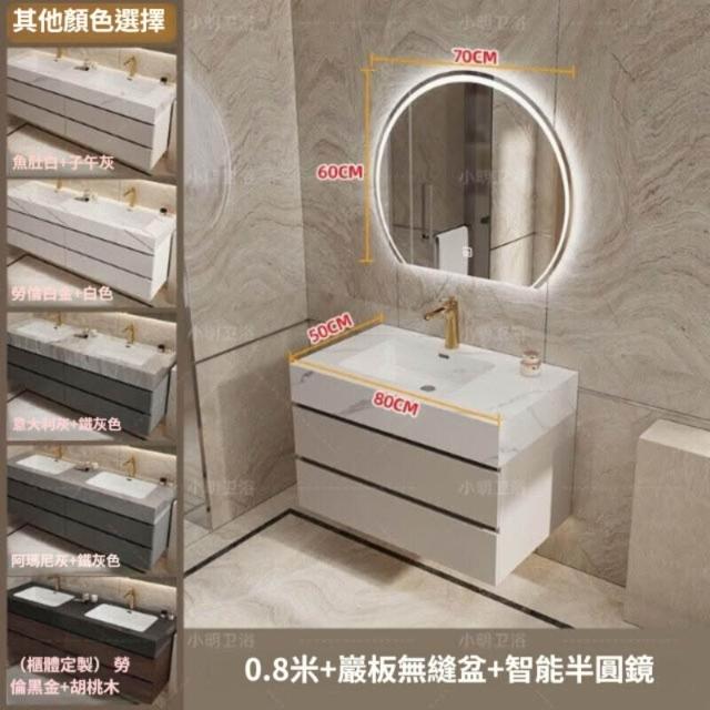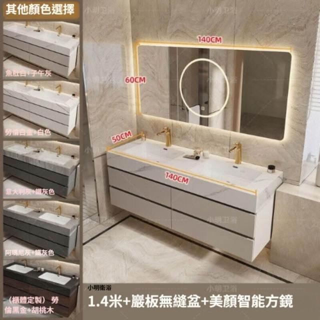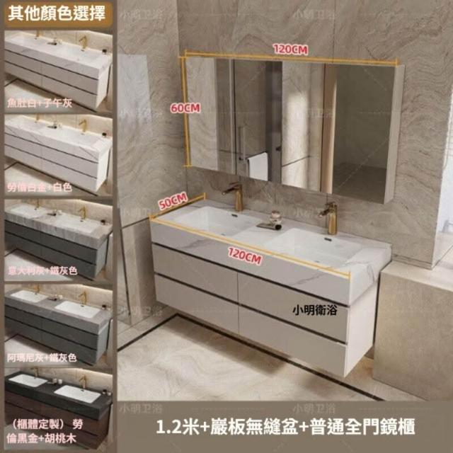 衛生間雙盆巖板浴室櫃組合廁所陶瓷無縫一體盆洗臉池洗手盆櫃套裝