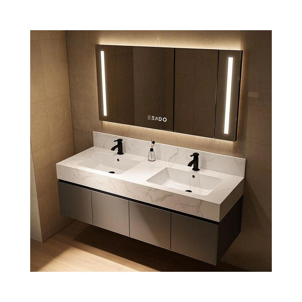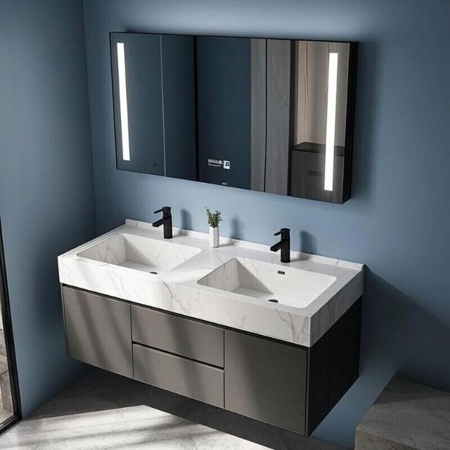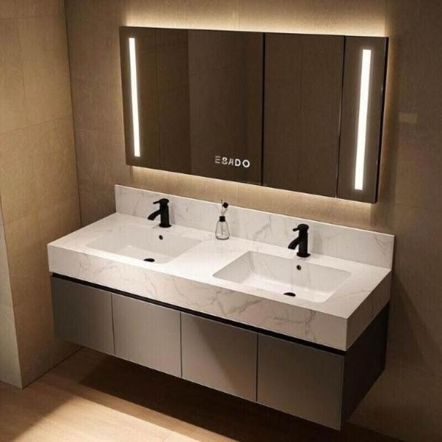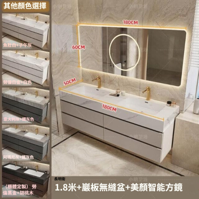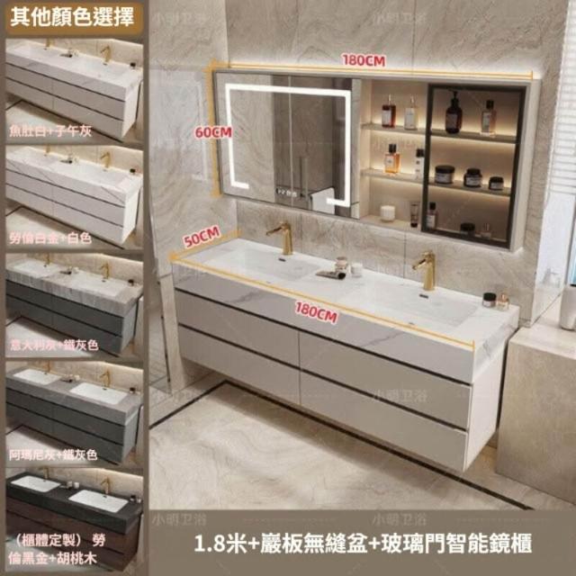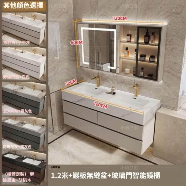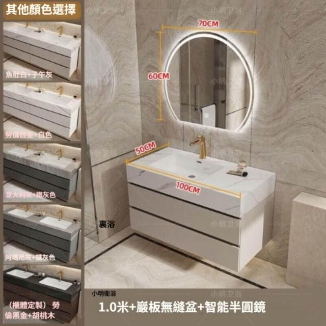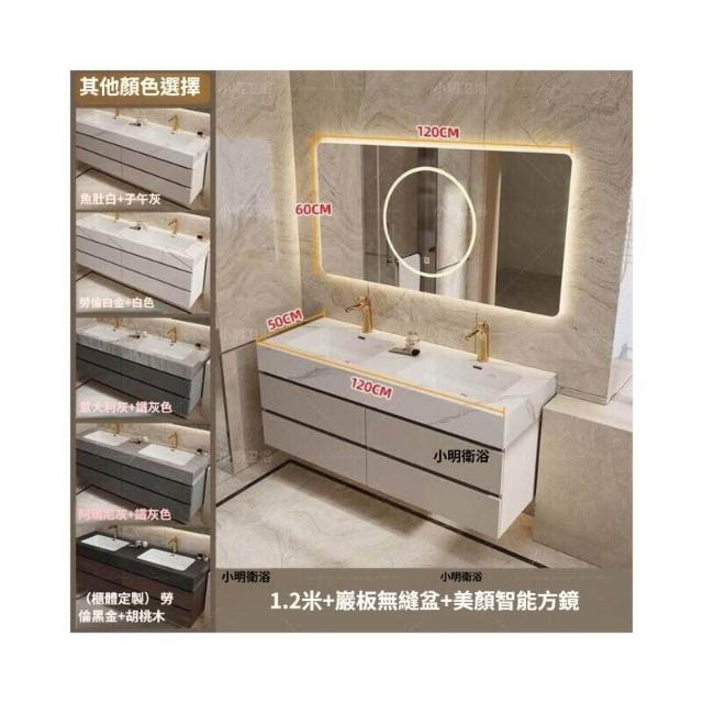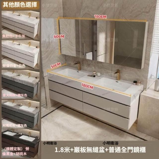 衛生間雙盆巖板浴室櫃組合廁所陶瓷無縫一體盆洗臉池洗手盆櫃套裝