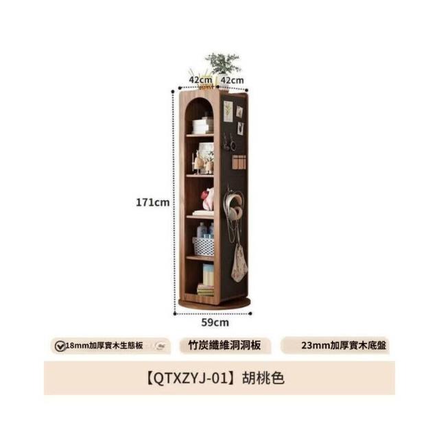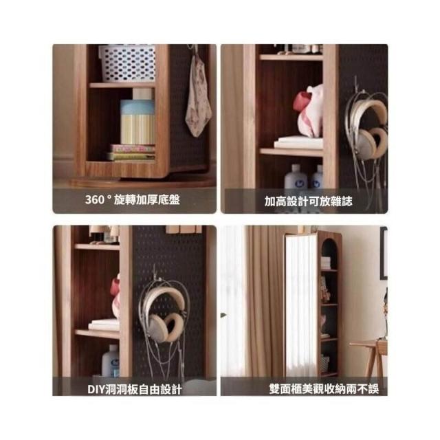 實木旋轉書架家用客廳帶洞洞板全身穿衣鏡落地置物架轉角收納書櫃