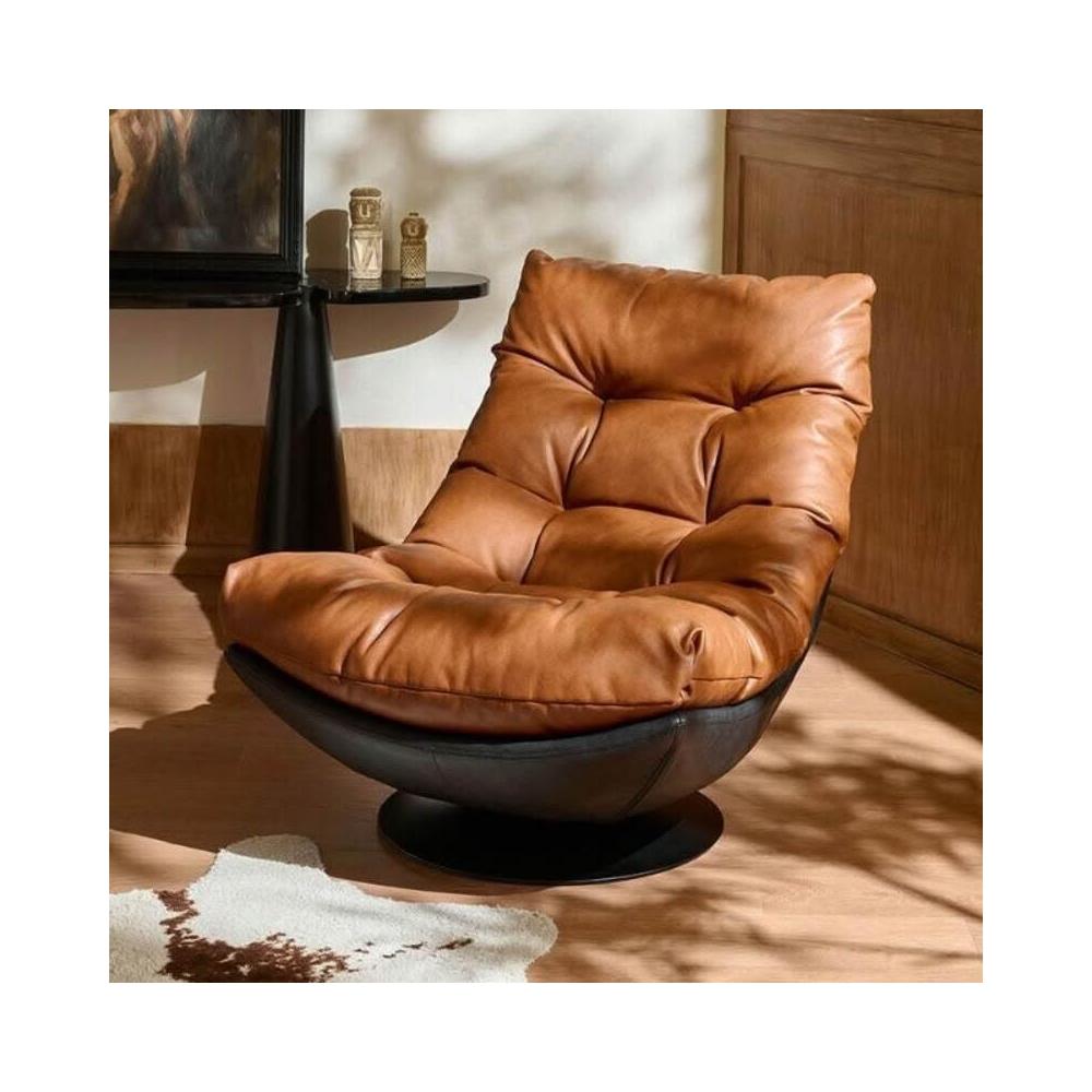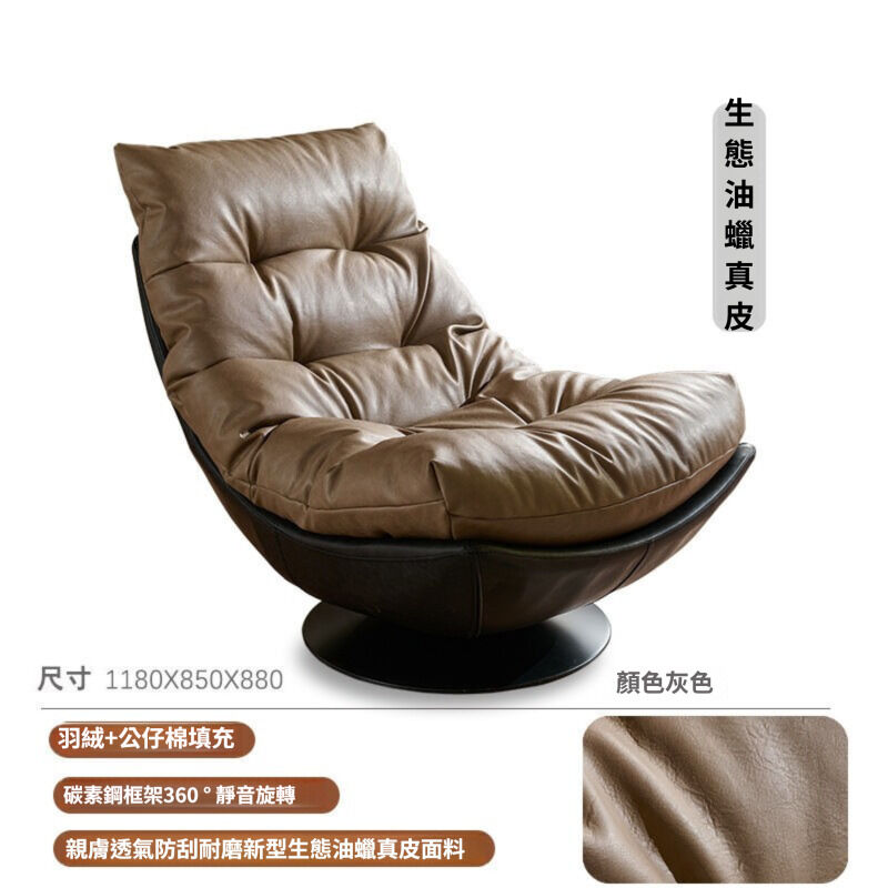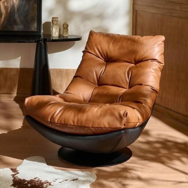 北歐輕奢單人沙發椅可旋轉客廳陽臺設計師中古風真皮休閑懶人沙發