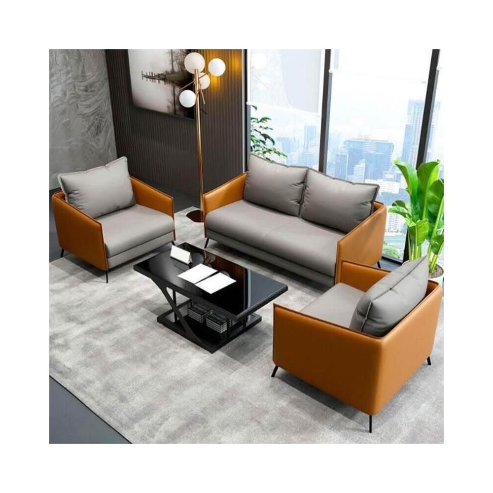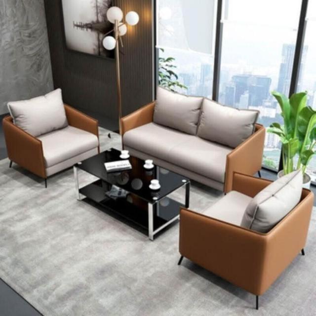 辦公室沙發簡約現代商務接待室會客創意休息區皮沙發茶幾組合套裝