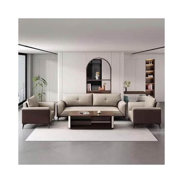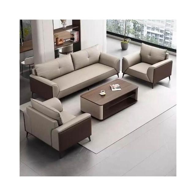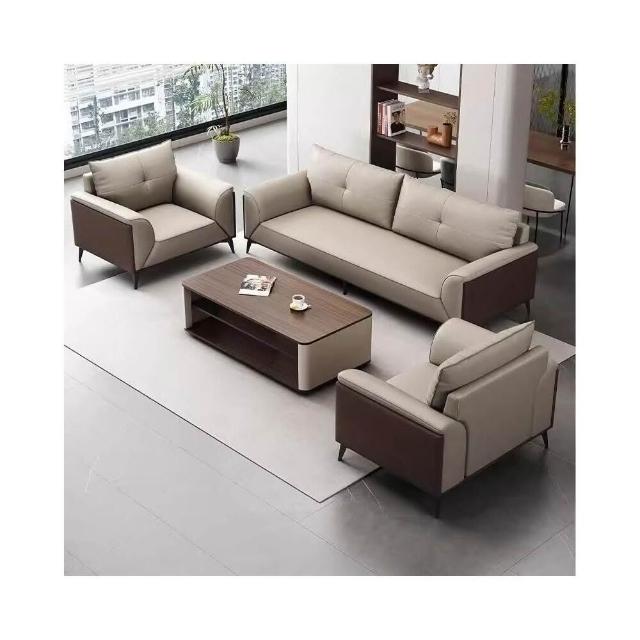 辦公沙發 茶幾組合套裝 簡約接待室休閑會客三人位真皮辦公室皮沙發