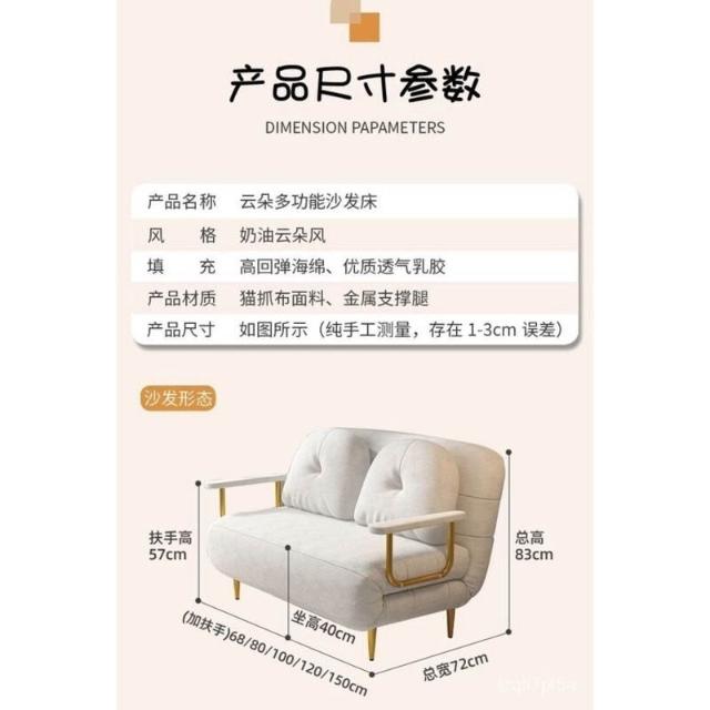 新品/免運雲朵沙髮床 可折疊兩用 小戶型陽臺 客廳書房 伸縮多功能 奶油單人沙髮 沙發床 折疊沙發 沙發椅