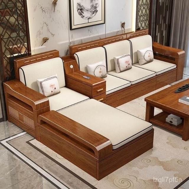 含稅/免運衚桃木 實木儲物沙髮組閤 鼕夏兩用高箱儲物現代簡約新中式貴妃轉角 儲物沙發 沙髮 三人沙髮 客廳沙發