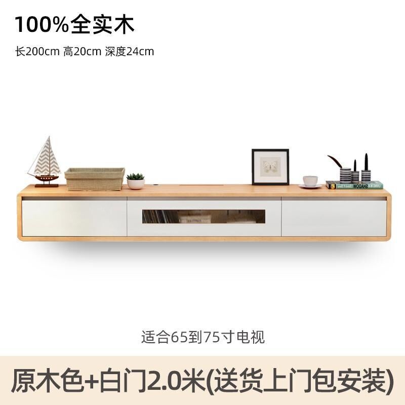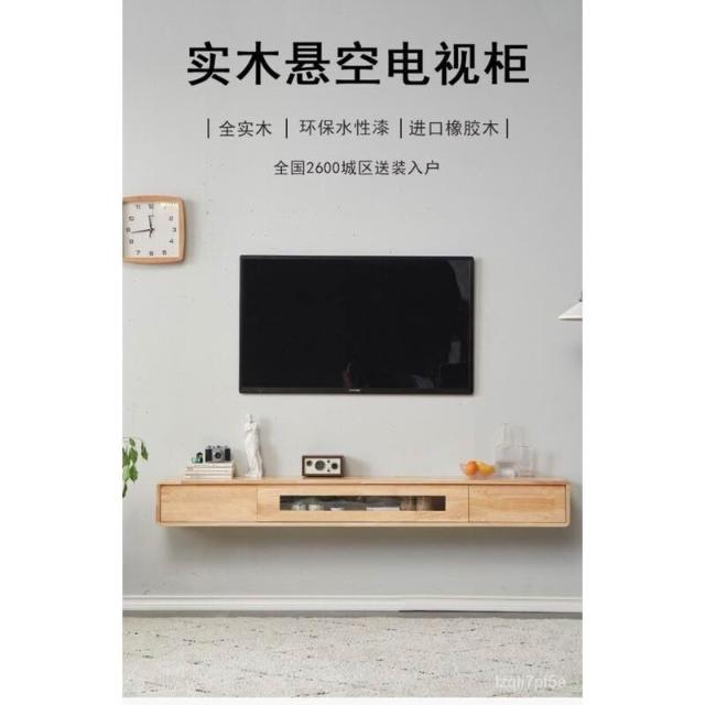 新品免運 實木懸掛式 電視櫃墻上壁 掛櫃子 日式原木色 客廳極簡懸空 懸浮純實木