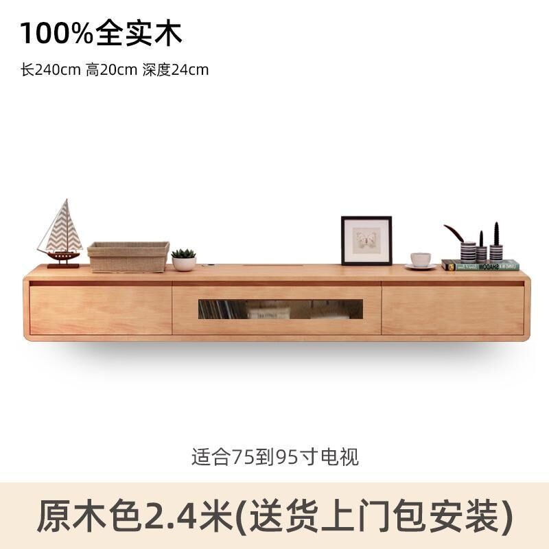 新品免運 實木懸掛式 電視櫃墻上壁 掛櫃子 日式原木色 客廳極簡懸空 懸浮純實木