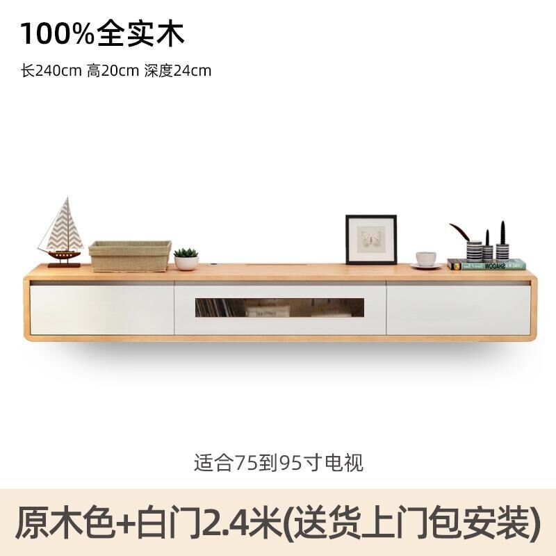 新品免運 實木懸掛式 電視櫃墻上壁 掛櫃子 日式原木色 客廳極簡懸空 懸浮純實木