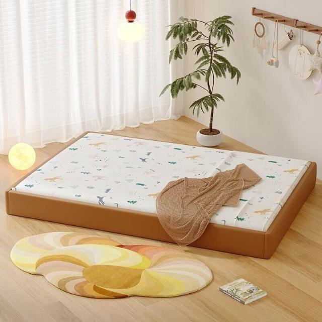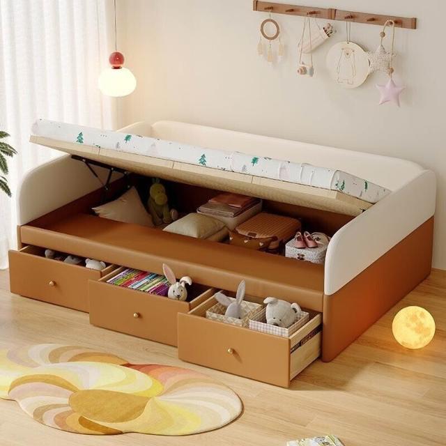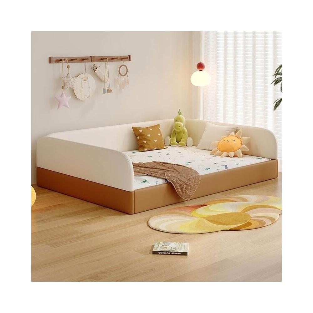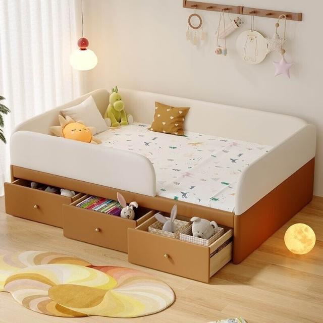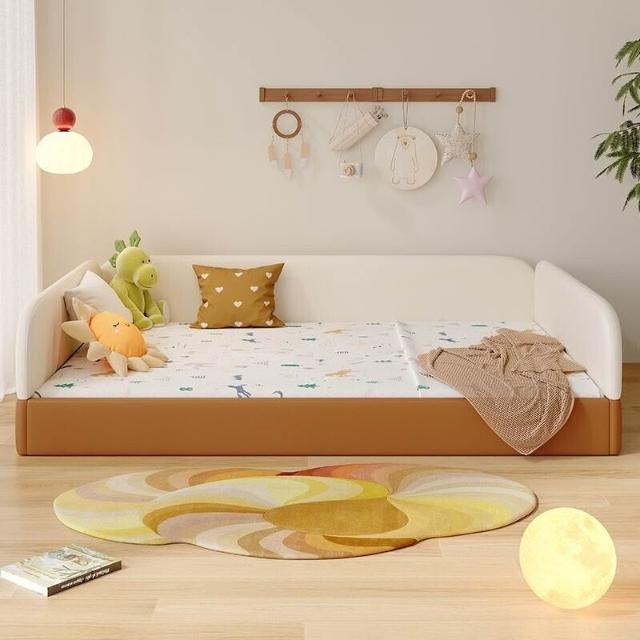 全臺可上門安裝可開發票蒙氏地臺床兒童真皮高箱儲物床簡約現代帶護欄嬰兒寶寶拼接地板床