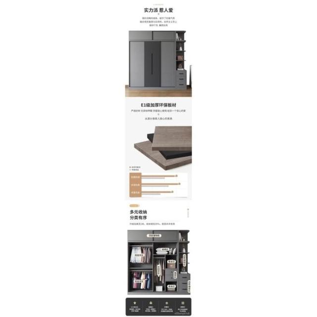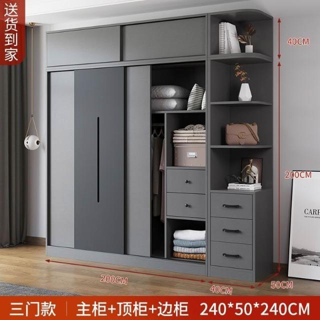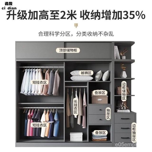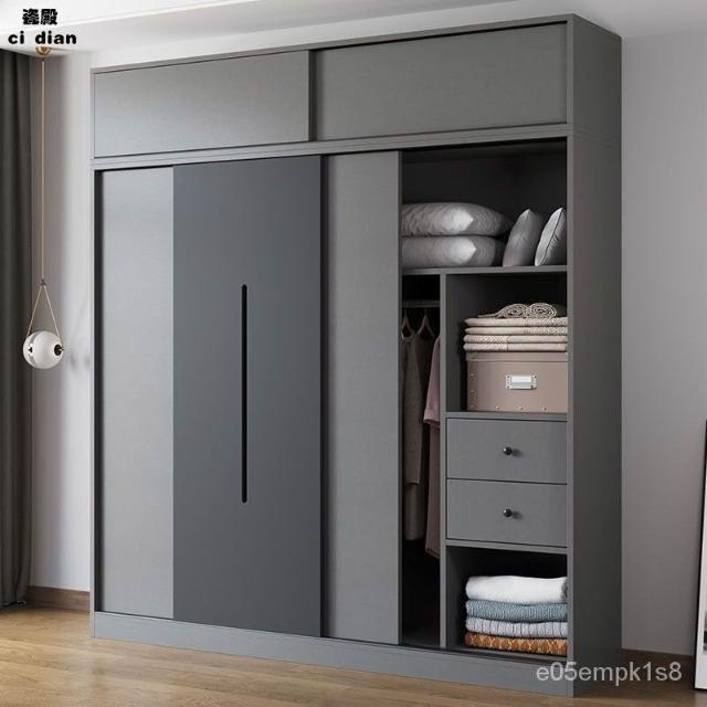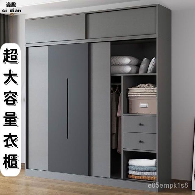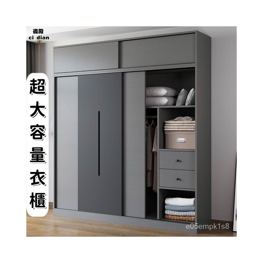 衣櫃 傢用臥室北歐組裝推拉門儲物櫃 實木出租房簡易成衣櫥 儲物櫃 玄關櫃 多功能衣櫃 置物櫃 推拉門衣櫃兒童衣櫃