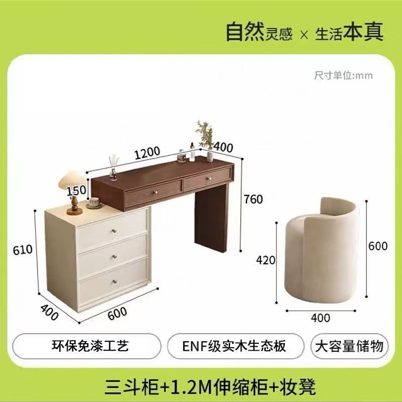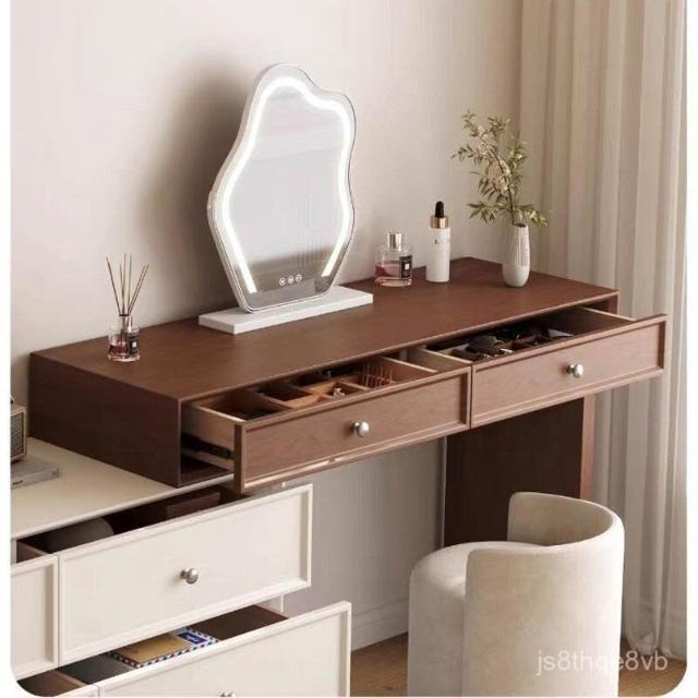 免運 熱銷2026新款臥室實木衚桃色梳妝臺鬥櫃一體化妝桌簡約現代北歐奶油風臥室化妝臺 收納櫃 轉角鬥櫃化妝桌 化妝臺