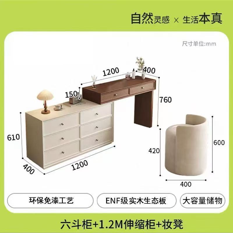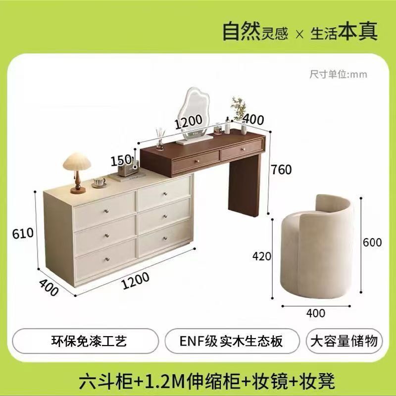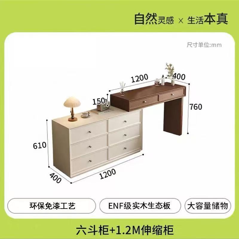 免運 熱銷2026新款臥室實木衚桃色梳妝臺鬥櫃一體化妝桌簡約現代北歐奶油風臥室化妝臺 收納櫃 轉角鬥櫃化妝桌 化妝臺