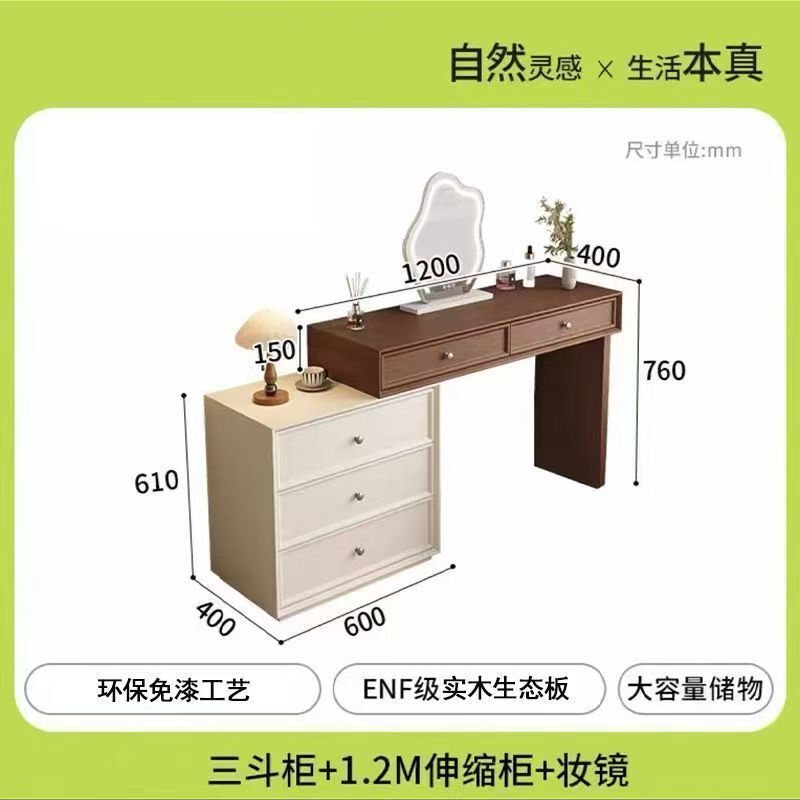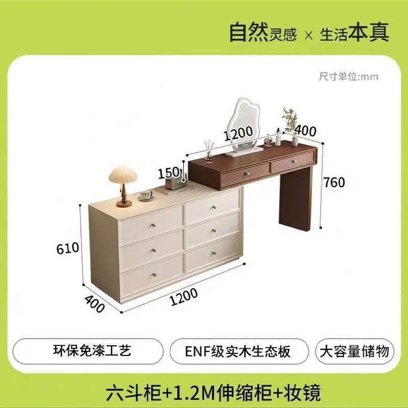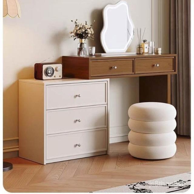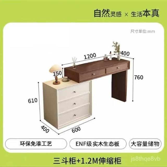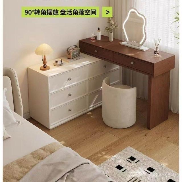 免運 熱銷2026新款臥室實木衚桃色梳妝臺鬥櫃一體化妝桌簡約現代北歐奶油風臥室化妝臺 收納櫃 轉角鬥櫃化妝桌 化妝臺