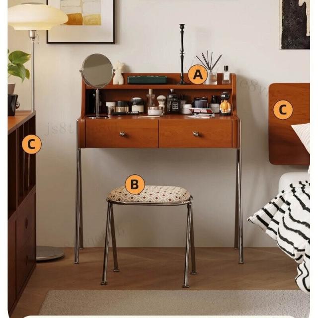 免運 破損補寄複古風置物多簡約現代實木梳妝臺原木臥室化妝桌法式複古小戶型收納美甲店儲物
