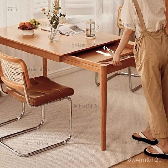 工廠直發舜伊家具伸縮餐桌北歐長方形原木櫻桃木抽拉簡約單邊加長飯桌家用