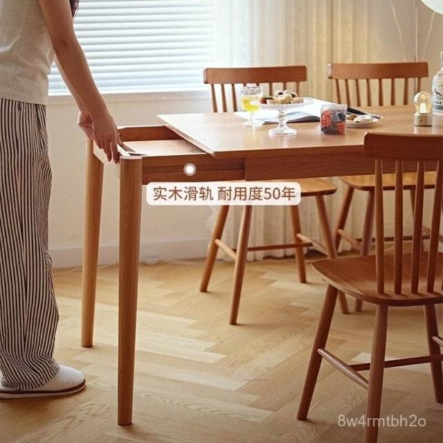 工廠直發舜伊家具伸縮餐桌北歐長方形原木櫻桃木抽拉簡約單邊加長飯桌家用