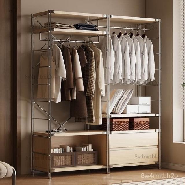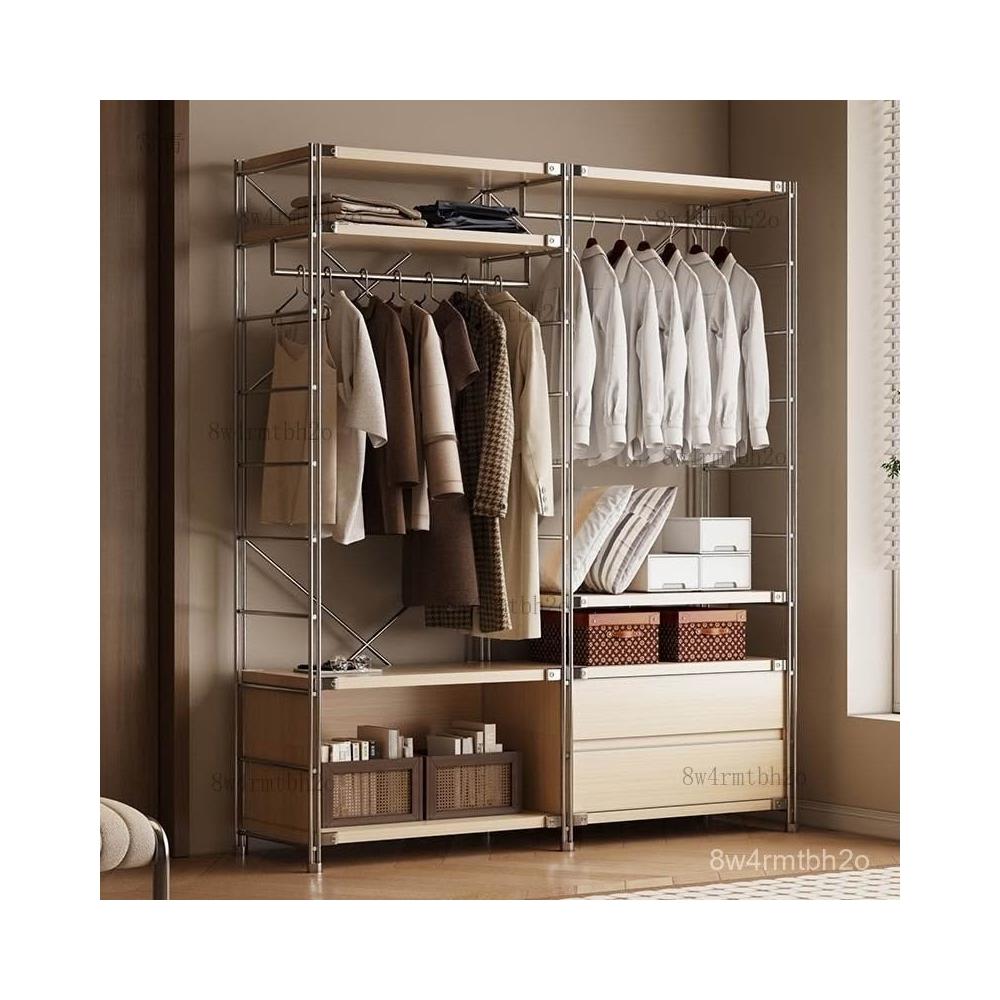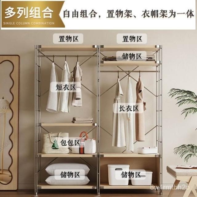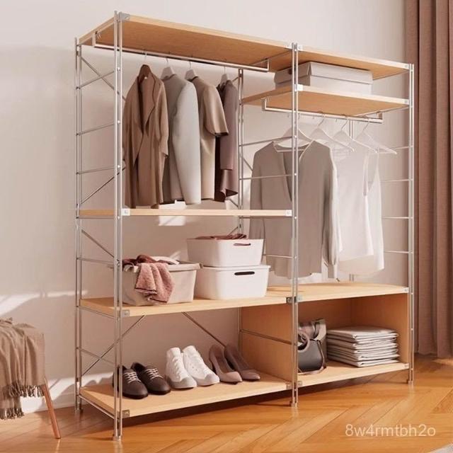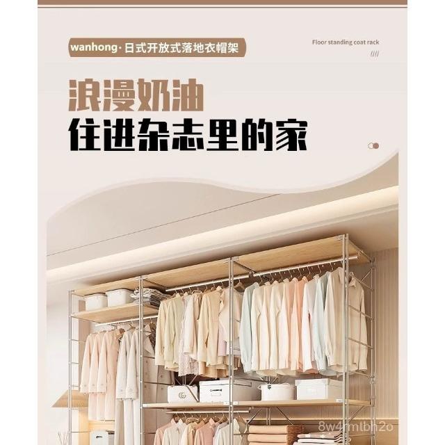 廠家直銷51cm深開放衣櫃日式原木風臥室掛衣架步入式衣帽間極簡衣櫥收納架