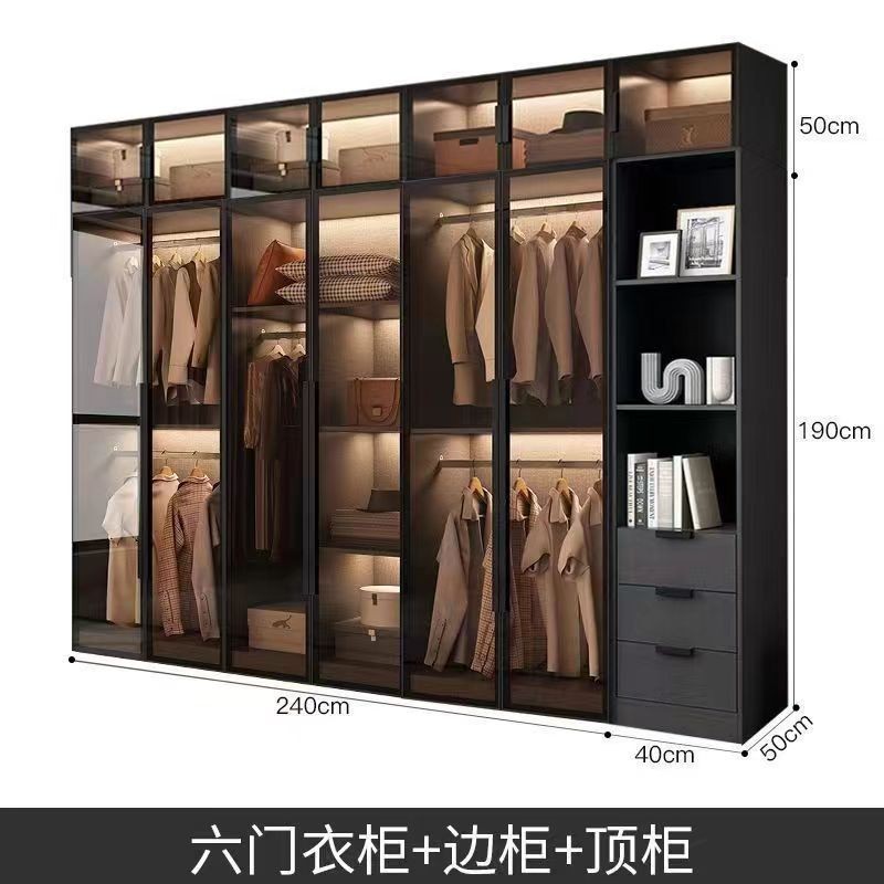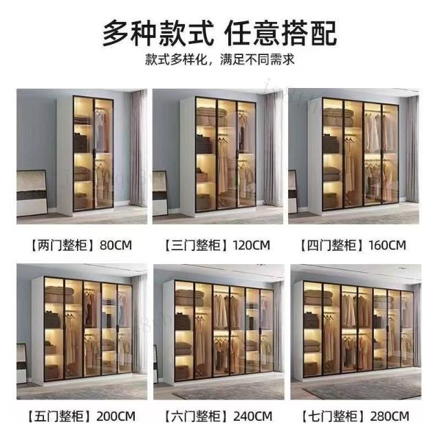 工廠現貨 免運 可上門安裝衣櫃家用臥室出租房用實木質經濟型現代簡約玻璃兒童儲物大衣櫃