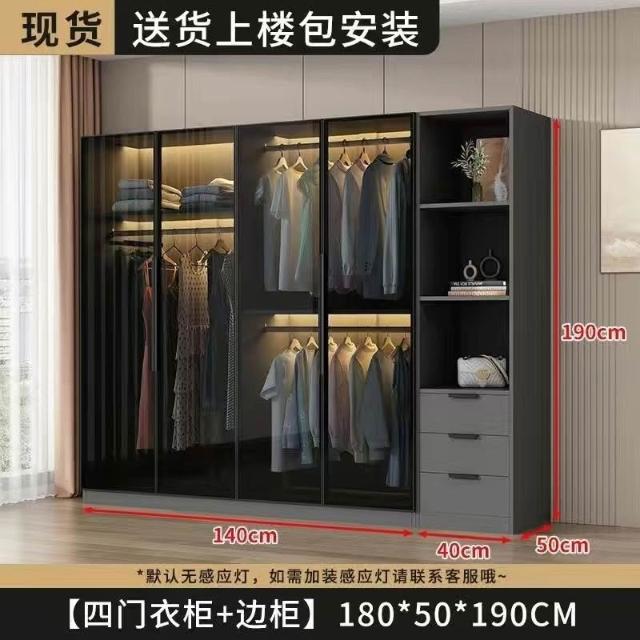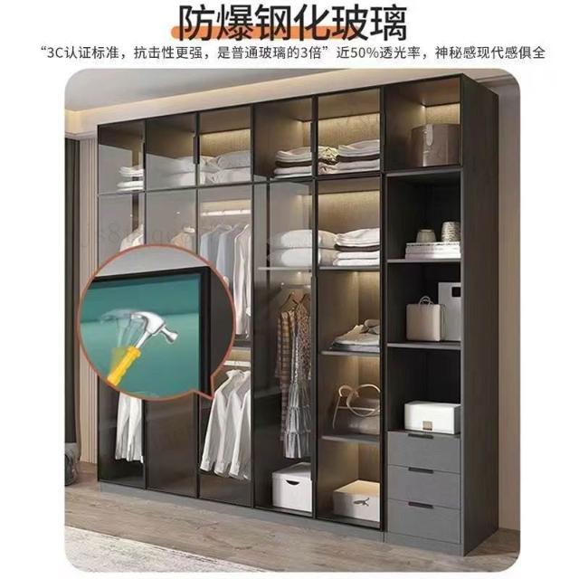工廠現貨 免運 可上門安裝衣櫃家用臥室出租房用實木質經濟型現代簡約玻璃兒童儲物大衣櫃