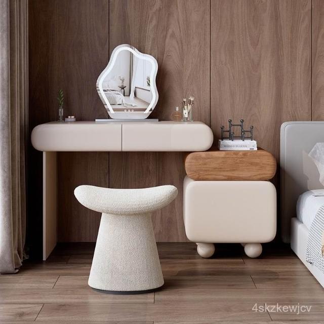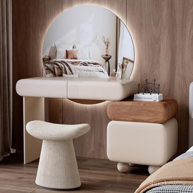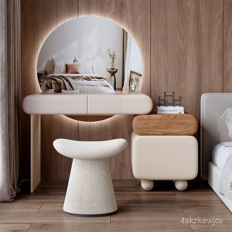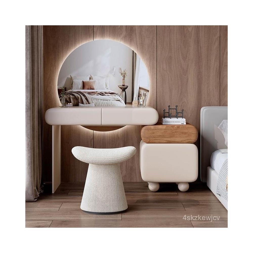 新品熱賣909人收藏2024新款輕奢奶油風梳妝臺大圓鏡網紅款臥室小戶型現代簡約化妝桌 JJHT