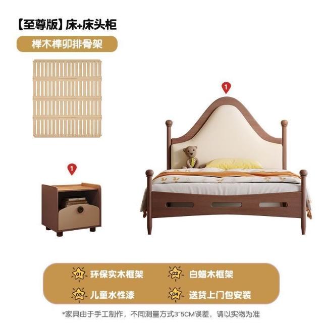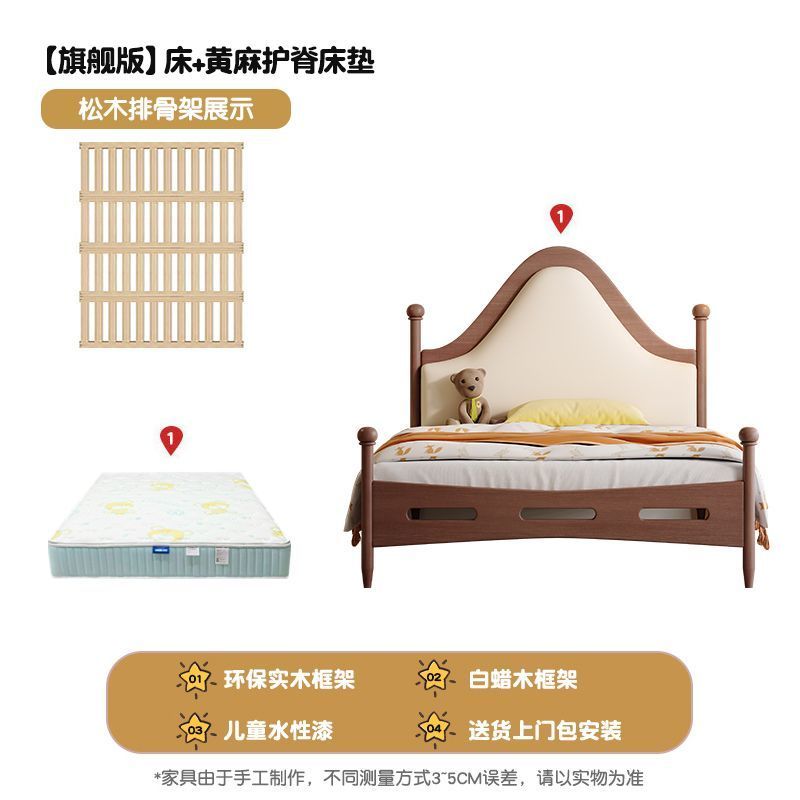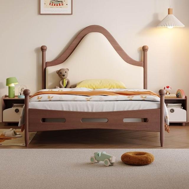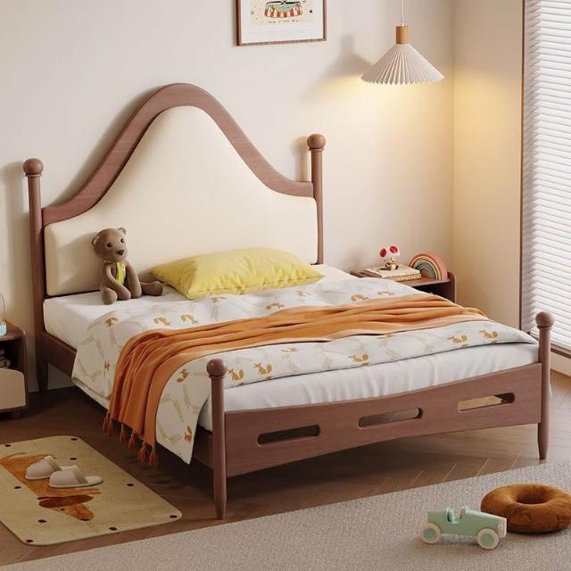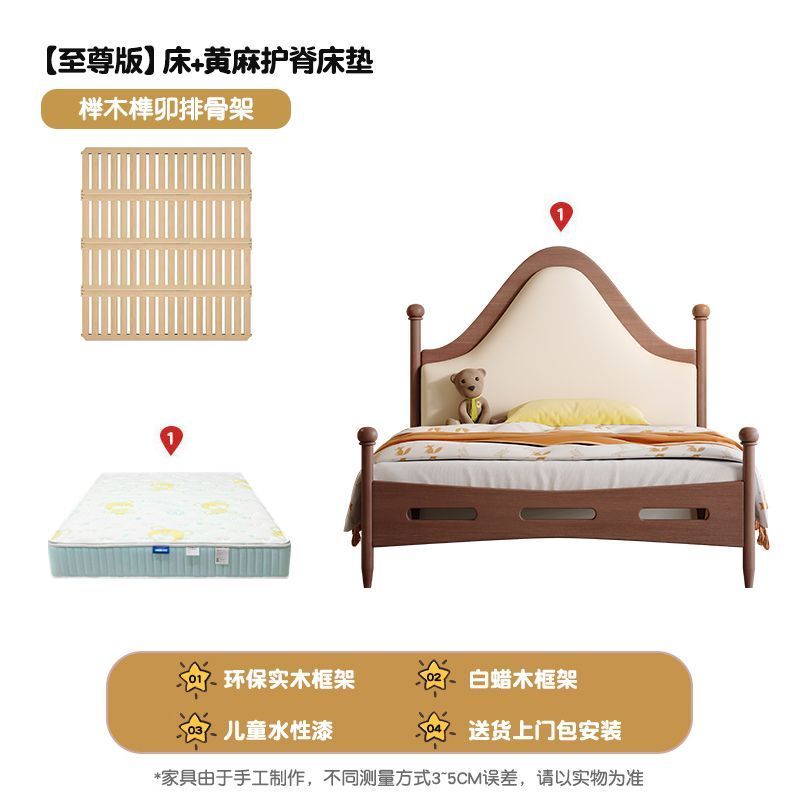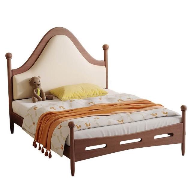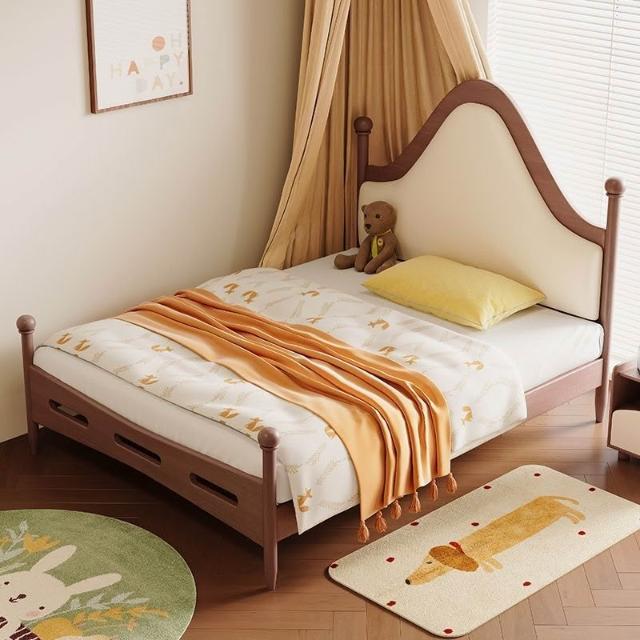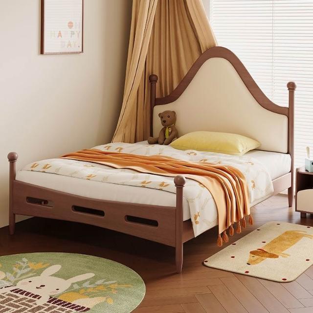 優選好物法式復古實木床男孩實木框架美式中古溫莎床1米5兒童床女孩公主床