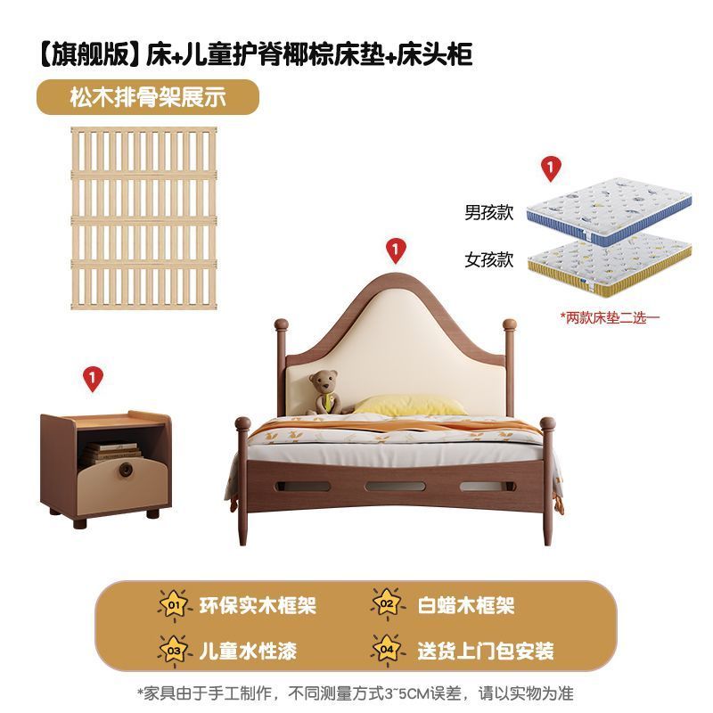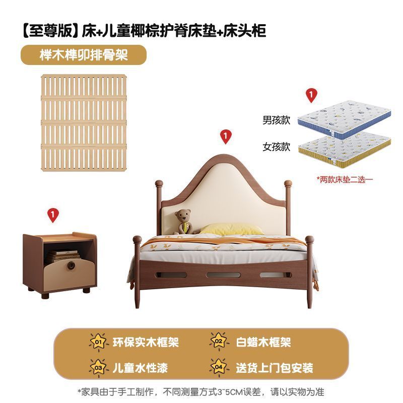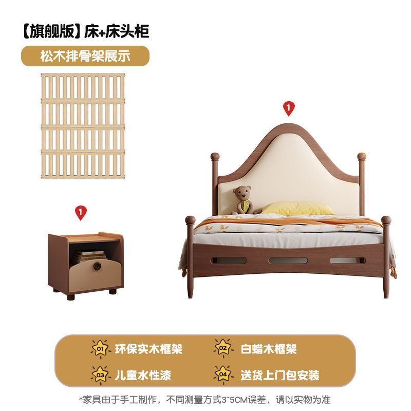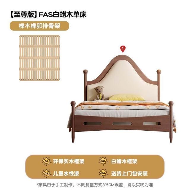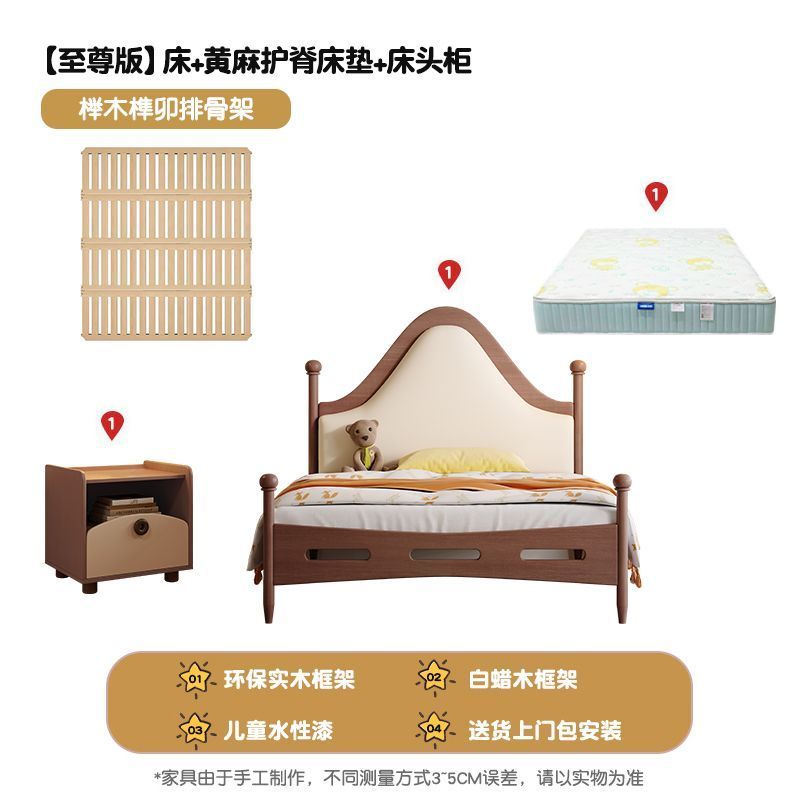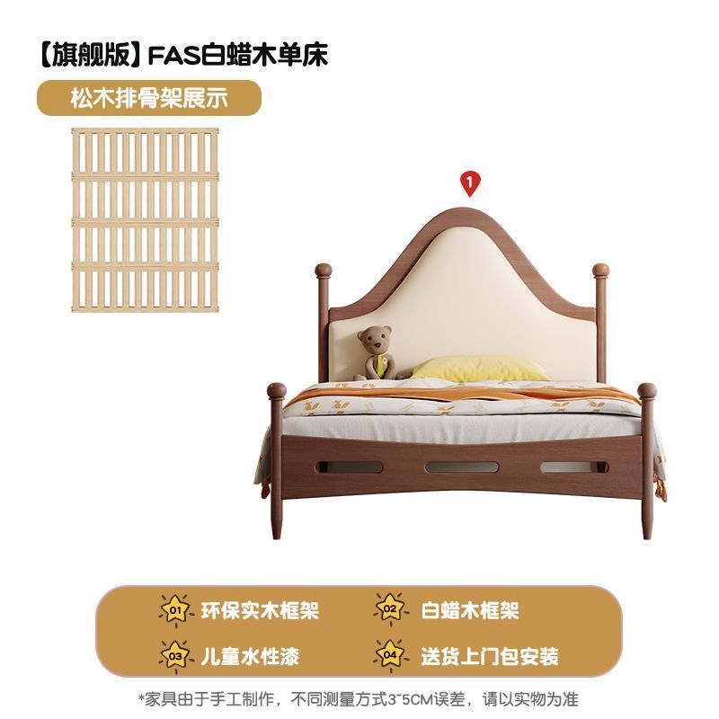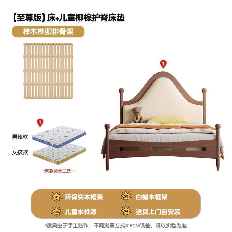 優選好物法式復古實木床男孩實木框架美式中古溫莎床1米5兒童床女孩公主床