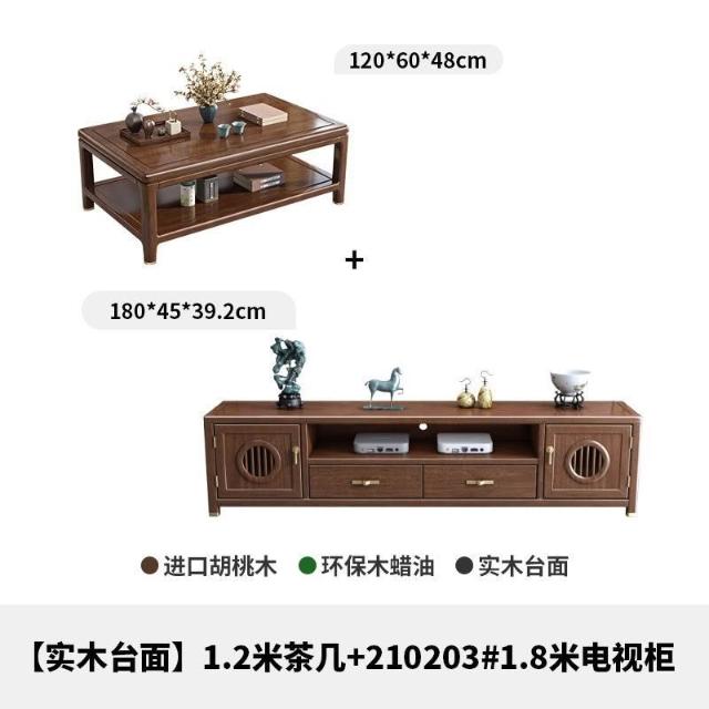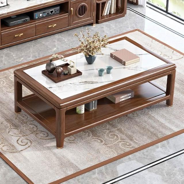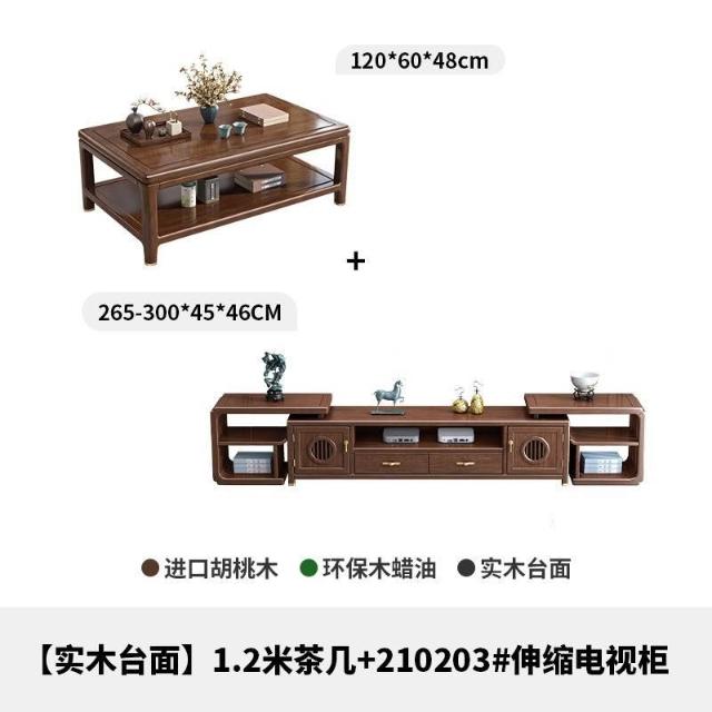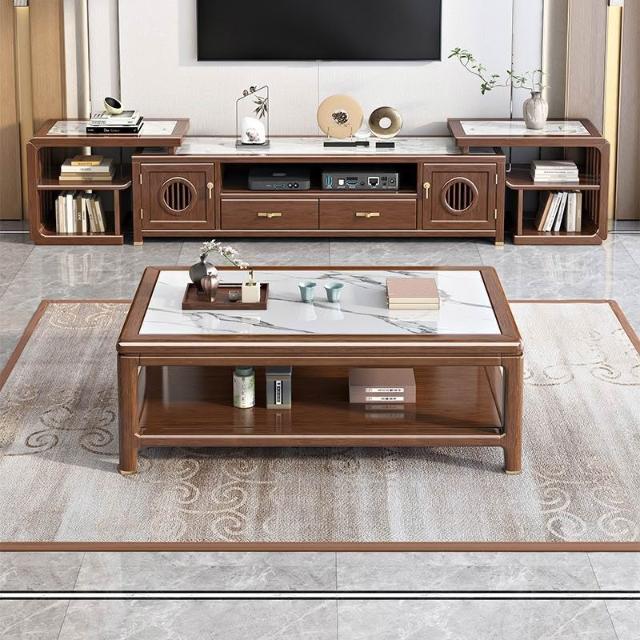 [最低下殺 免運]新中式實木巖板茶幾電視櫃組合簡約胡桃木客廳家用小戶型桌