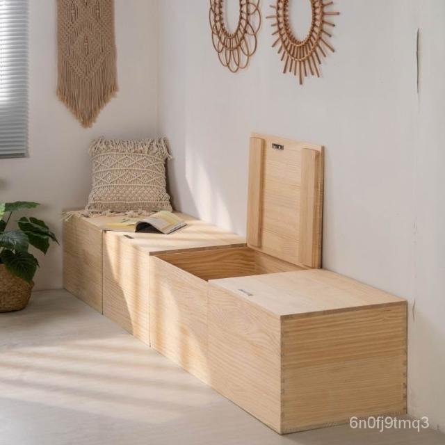免運#榻榻米木箱子實木拚接床箱組閤飄窗櫃地臺床加寬儲物箱可坐收納箱 WITV