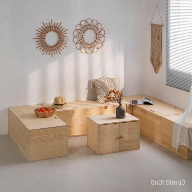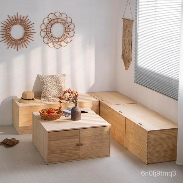 免運#榻榻米木箱子實木拚接床箱組閤飄窗櫃地臺床加寬儲物箱可坐收納箱 WITV