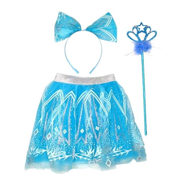 摩達客★萬聖派對變裝扮★兒童冰藍蝴蝶精靈仙子三套組(髮箍/紗裙/仙女棒) ★Cosplay