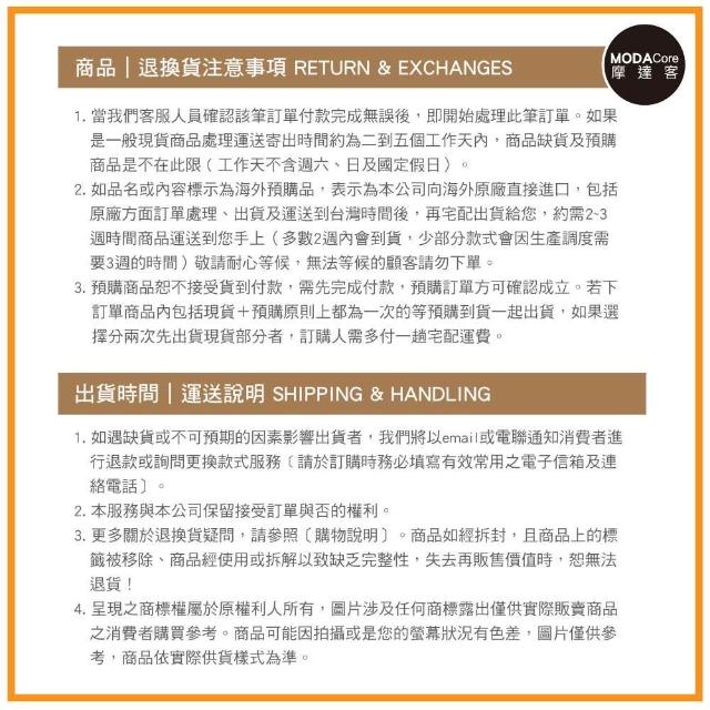 - 商品到貨享十天猶豫期之權益(注意!猶豫期非試用期),依法辦理退貨商品必須是全新狀態且包裝完整(包含主機、附件、內外包裝、隨機文件、贈品等)。如商品一經拆封或使用致商品價值受損(例僅得以福利品出售),商店將向消費者就商品一部或全部價值減損收取適當之費用(回復原狀、整新費),否則將影響退貨的權限。請先確認商品正確、外觀可接受,再行開機/使用,以免影響您的權利,祝您購物順心。