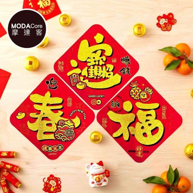 摩達客◉春節開運招財◉植絨17cm創意金字招財進寶春福斗方3片組春聯牆貼
