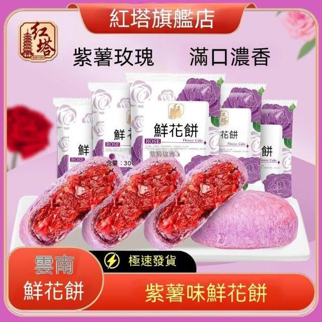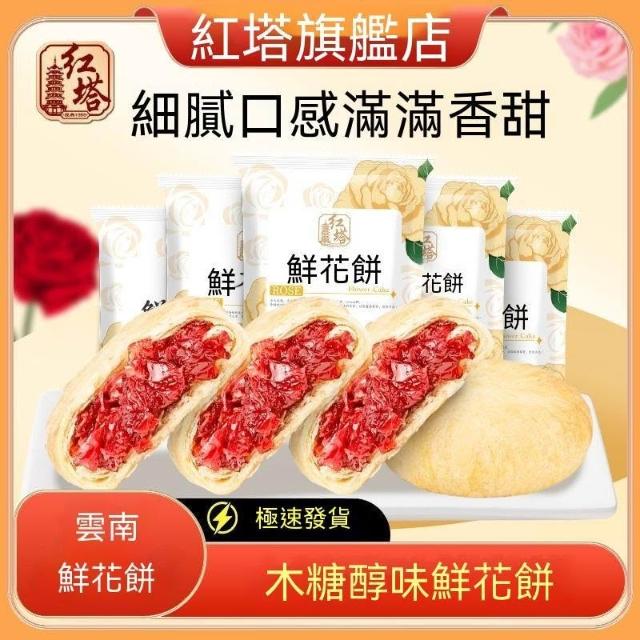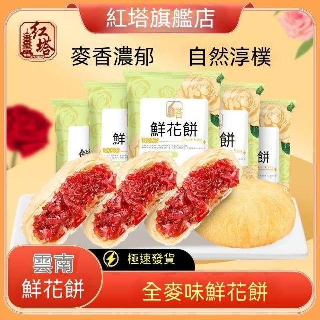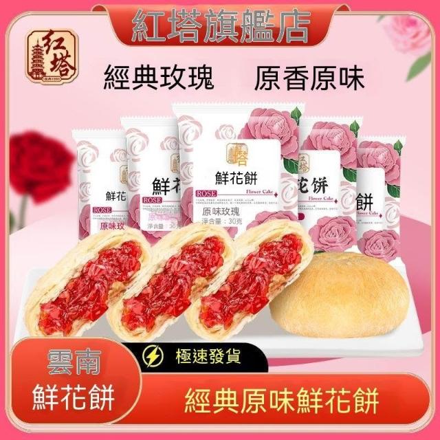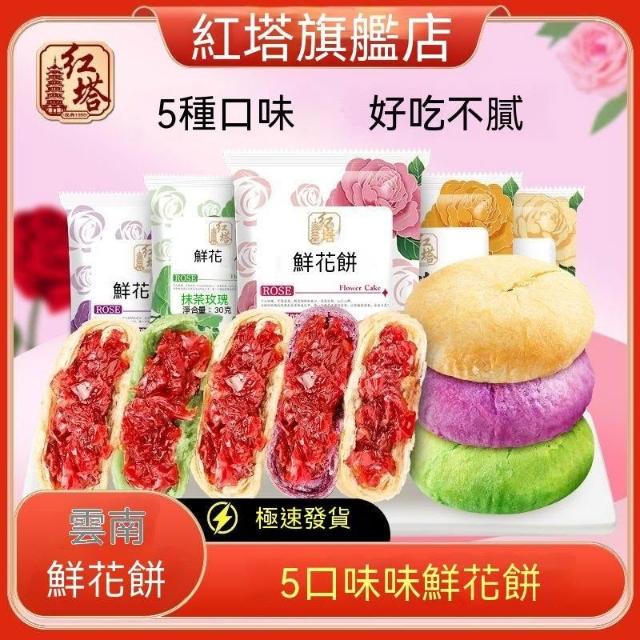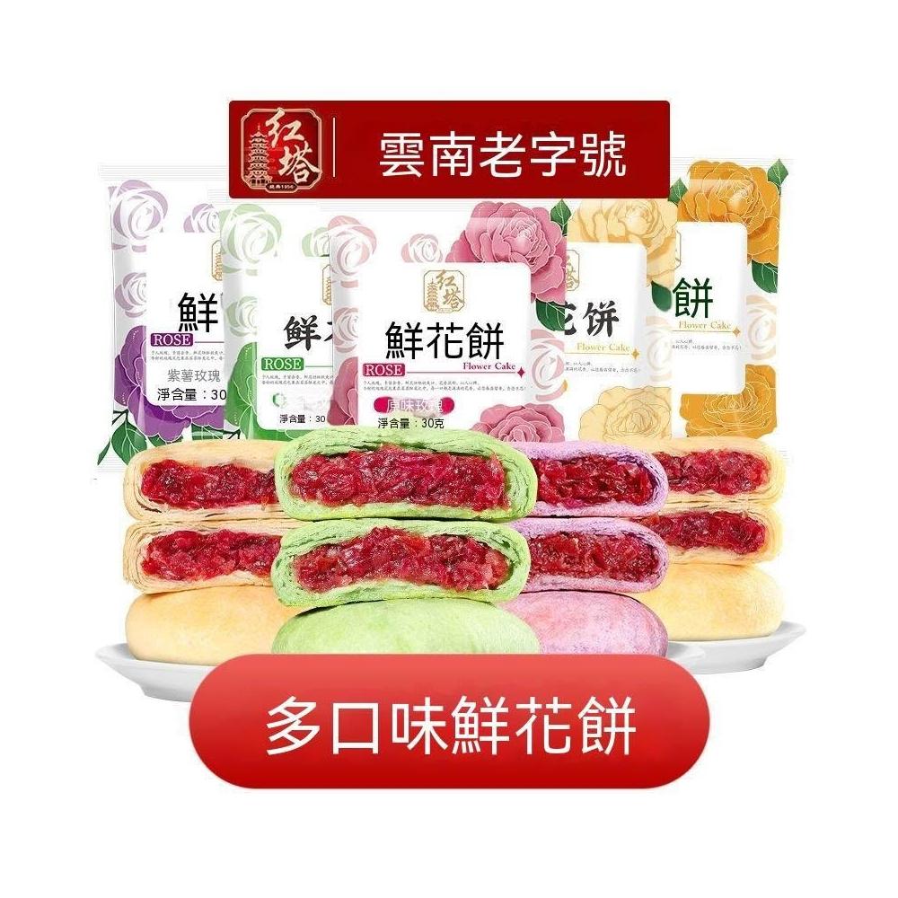 飄飄優選紅塔五口味30g鮮花餅雲南老字號玫瑰抹茶花餅糕點心零食特產