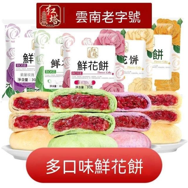 飄飄優選紅塔五口味30g鮮花餅雲南老字號玫瑰抹茶花餅糕點心零食特產