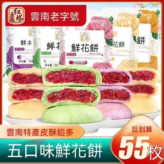 飄飄優選紅塔五口味30g鮮花餅雲南老字號玫瑰抹茶花餅糕點心零食特產