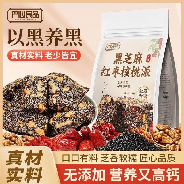 飄飄優選嚴心良品黑芝麻紅棗核桃派軟糕250g枸杞健康營養品經典方