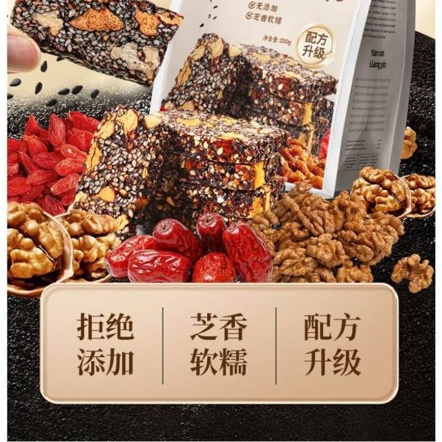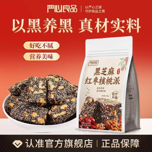 飄飄優選嚴心良品黑芝麻紅棗核桃派軟糕250g枸杞健康營養品經典方