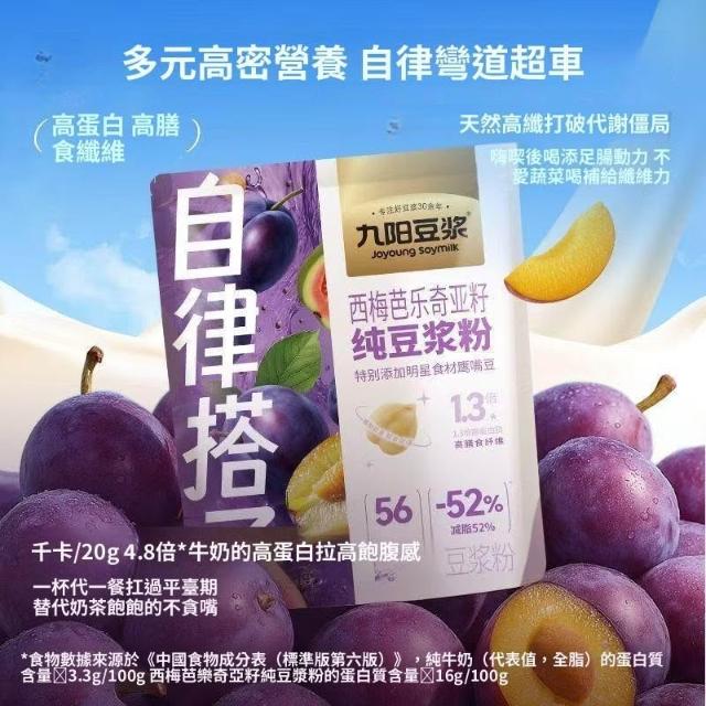 甄選【九陽豆漿】自律搭子西梅芭樂&羽衣甘藍純豆漿粉青汁營養早餐代餐粉