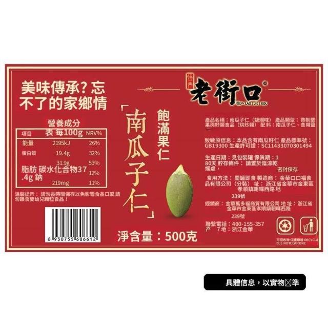 甄選【老街口】 鹽焗味南瓜子仁500g*2罐脫殼熟南瓜籽仁炒貨烘培零食新貨
