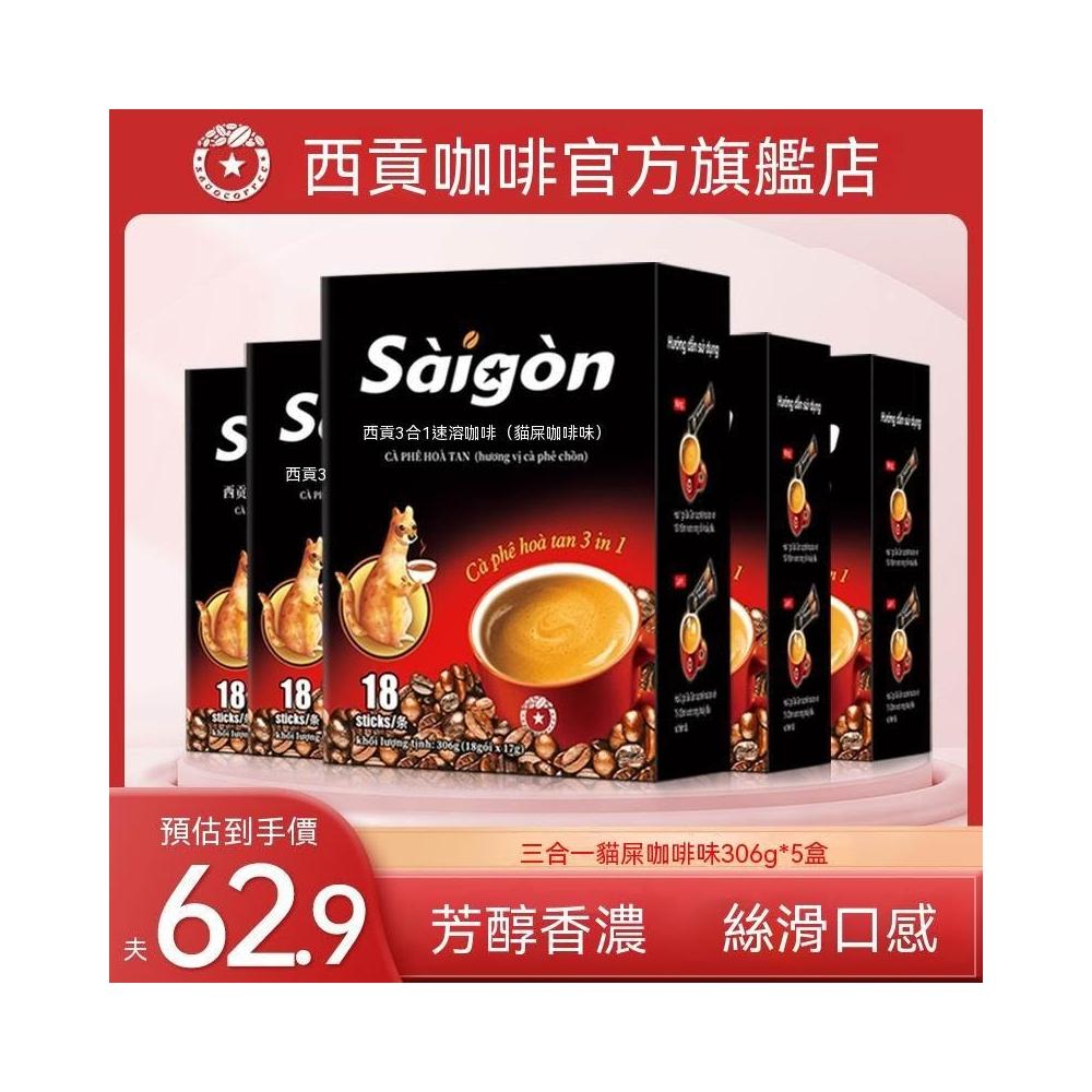 越南西貢貓屎咖啡味306g進口盒裝三合一速溶咖啡沖泡飲品18/54杯