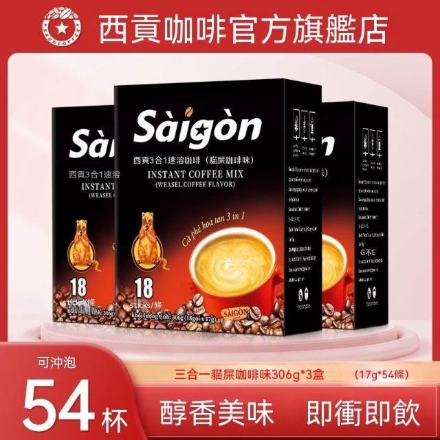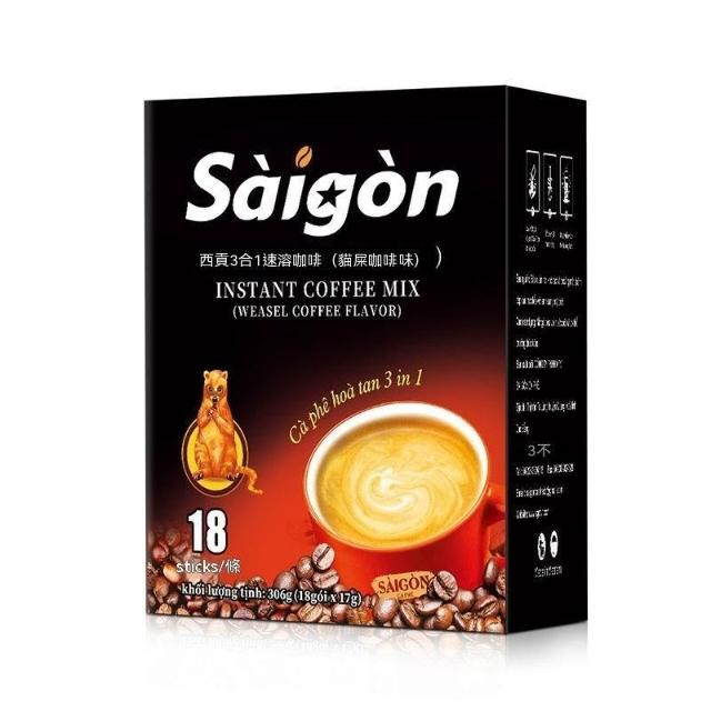 越南西貢貓屎咖啡味306g進口盒裝三合一速溶咖啡沖泡飲品18/54杯