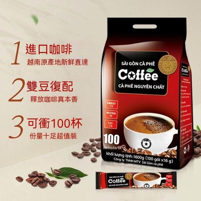 越南西貢原味咖啡1600g進口三合一速溶咖啡粉大袋裝100條沖泡飲品